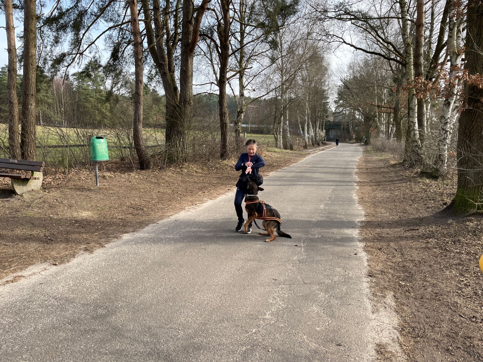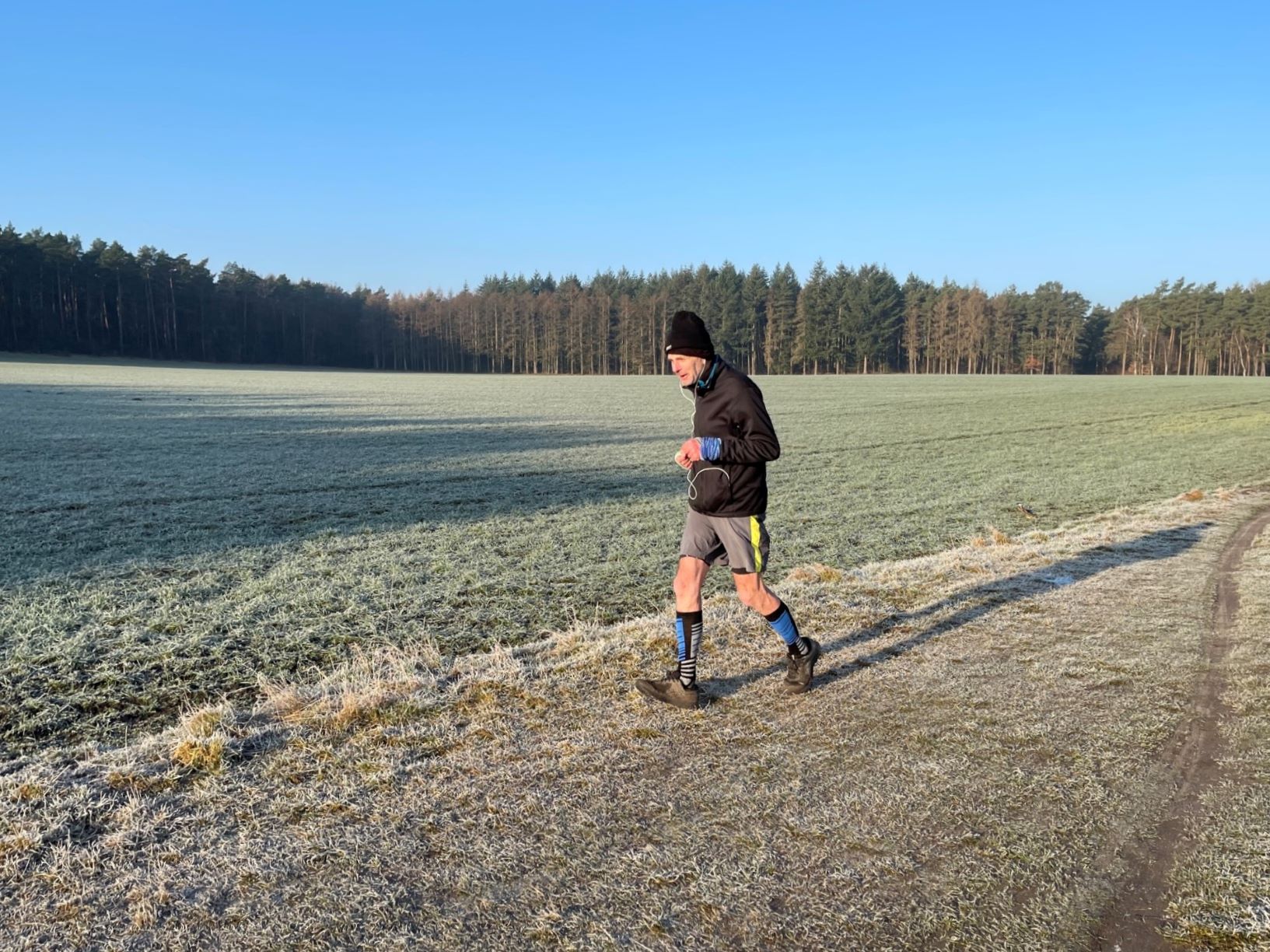 Früher Morgen, 6:30 Uhr, Werner ist schon unterwegs Wir haben, wie immer, direkt an Start und Ziel geparkt!Die Strecke erwartet die Läufer, aber auch Karl Wolfgang und Cornelia sind schon pünktlich zu ihren individuellen Startzeiten auf die Runde gegangenIch muß heute eine Marathon-Zwangspause einlegen, aber ich gehe die Strecke entgegen der Laufrichtung mal gemütlich ab!Währenddessen hat Werner schon seine erste Runde beendet …… und geht in die zweite Runde, zusammen mit Helmut, der jetzt erst gestartet istIch nehme eine Abkürzung und begegne jetzt Burkhard und Helmut, die auf der Höhenrunde gerade km 2 passiert habenAls nächster kommt mir 600er Kandidat Werner entgegen, er ist unser zweithäufigster Gast hier im Tal der Seeve!Christian und Ingo haben gerade ihren Job angetreten und ich marschiere erstmal wieder zum Laufbüro. Später gehe ich auf die umgekehrte Höhenrunde und …… da sind die beiden schon wieder! Ich weiß, ich werde jetzt alle Lauffreunde auf der Runde von 10,651 km treffen, sie können mir nicht entkommen, Karl Wolfgang, …… Burkhard als Buchwedel-Neuling, …… Rosi und Cindy, mit Abstand die fleißigsten Starter hier in Horst, Ohlendorf und Umgebung, …… Helmut liegt an dritter Stelle der Buchwedel-Gäste, …… Christian ist in den letzten Monaten sehr oft dabei, …,,, ebenso wie Cornelia, die vorbildlich mit Bus und Bahn anreist, kein Auto ist also kein Hinderungsgrund!Ingo kann heute ausnahmsweise nicht ganz mit Andreas mithalten, kein Wunder, der verriet mir nämlich, daß Ingo am Vortag mal eben 85 km im Training zurückgelegt hat!Burkhard auf der Waldgeraden, ich traf ihn zuletzt am Harztor in Northeim bei Michael Kiene, habe ihn fast nicht erkannt, keine Mütze, dafür lange Haare, eine typische Corona-Folgeerscheinung!Wenig später diese beiden alten Haudegen, man könnte meinen, sie tragen hier die M65-Buchwedel-Höhenrunden-Meisterschaft aus!Ja, altes Sprichwort, man trifft sich immer zweimal, Rosi und Cindy haben hier schon 2 1/2 Runden bewältigt!Auch Helmut ist fast soweit, er hat gerade wieder den höchsten Punkt der Strecke überwunden, ca. 60 m ü.NN Diese rätselhaften Runen sind allerdings keine Streckenmarkierungen!So sehen die Läufer das Gefälle vor sich, vorbei an der kleinen Schutzhütte, links unten ein winziger Bach mit Mini-Wassermühlen, in google maps „Flußdorf der Zwerge“ genanntIngo hat an dieser Stelle die härteste Steigung noch vor sich! Aber er war es, der sich den Umstieg auf die Höhenrunde gewünscht hat, also selber schuld!Gunla erwartet wieder fröhlich alle Läufer im Ziel!Ja, Karl Wolfgang hat seine Mission erfüllt, Christian wird aber noch die Ultrawertung abräumen!Karl Wolfgang und ich können währenddessen schon Fachgespräche führenEs ist eindeutig: Rosi und Cindy sind im Ziel des Marathons, Cindy weiß nämlich genau, jetzt gibt’s ein Leckerli!Ultra wieder mal gefinisht, Christian, Gratulation!Das haben die beiden auch schon gemerktChristian scheint zu sagen: „Helmut, für den Ultra mußt du aber noch in die Kleine Runde!“Jaaa!!! Werner, mit den Namen seiner 4 Enkel auf dem Shirt und dem Stock, über den er gestürzt war, in der rechten Hand erreicht er die Ziellinie zu seinem 600. Marathon/Ultra! Gratulation!Nach so einer Leistung ist Entspannung für jeden Marathonläufer sehr wichtig!Auch Ingo hat diese Phase jetzt erreicht!