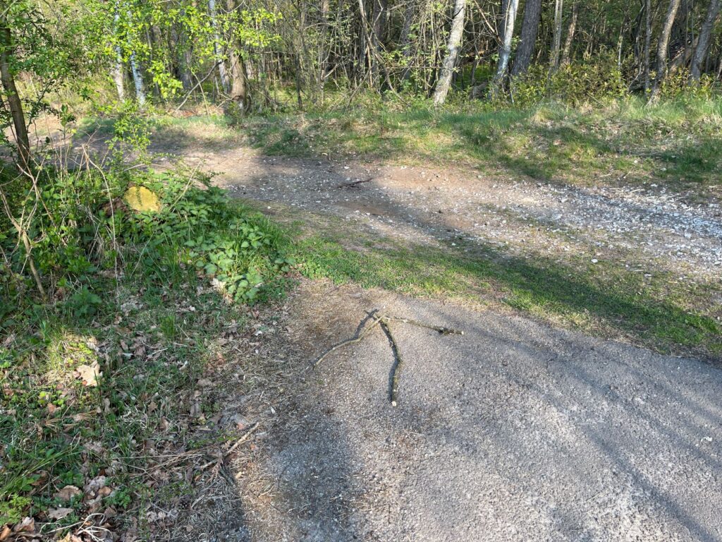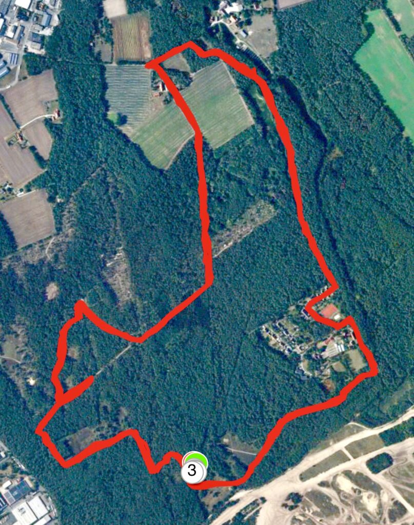 … kommt Heiner, er erzählt mir, daß er sich durch einen Fake-Holz-Pfeil in seiner ersten Runde verlaufen hatte und im Industriegebiet landete, er fand aber wieder zurück auf die Strecke