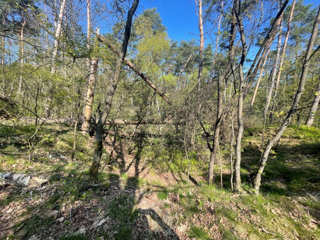 … hier im dicht bewaldeten Dünenfeld von Augustdorf