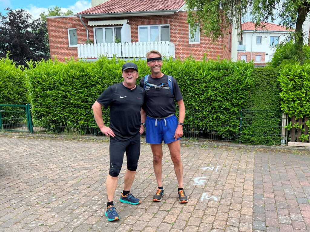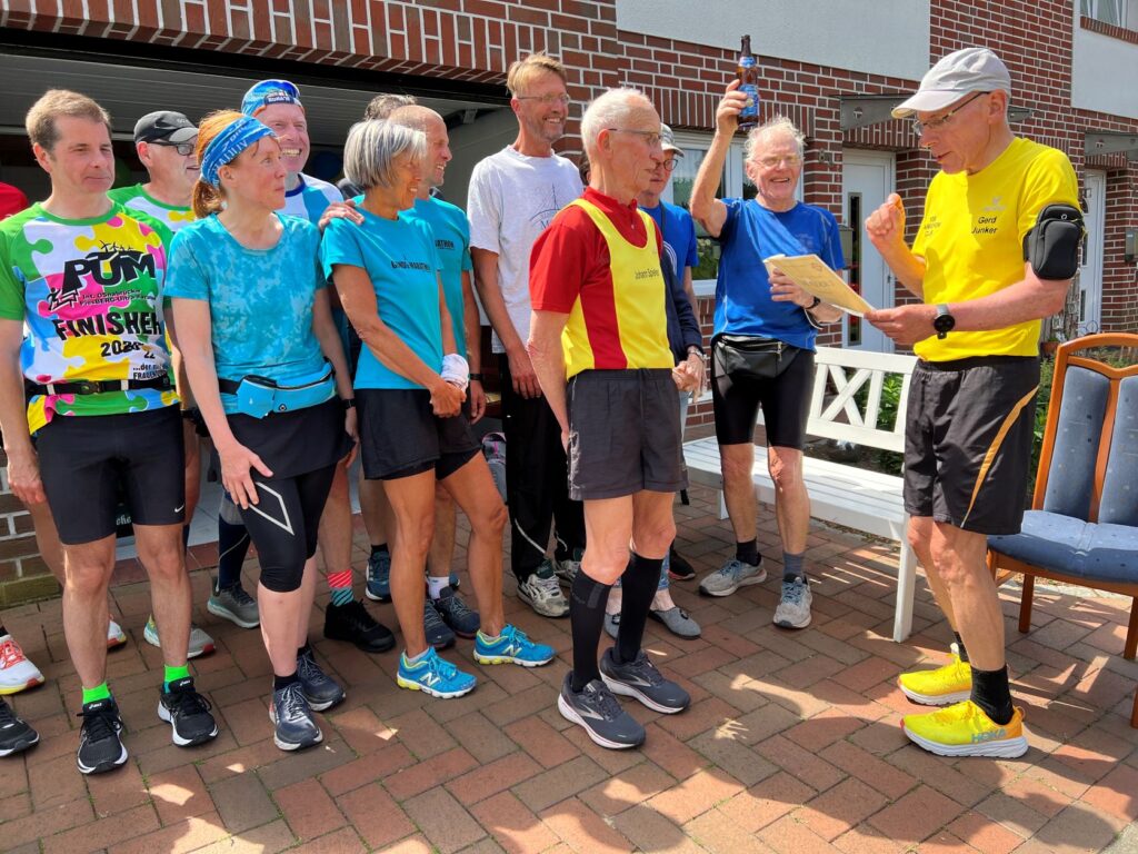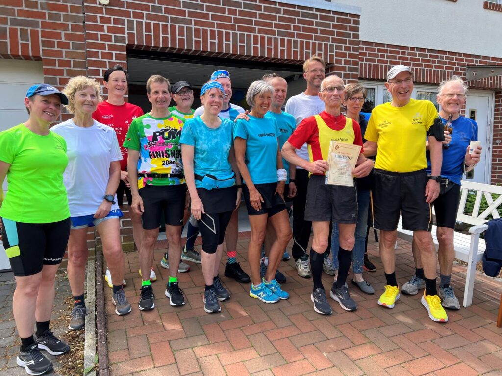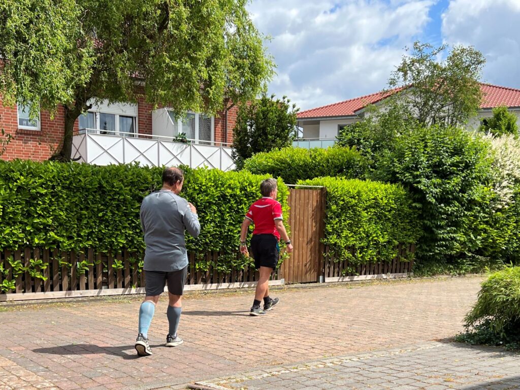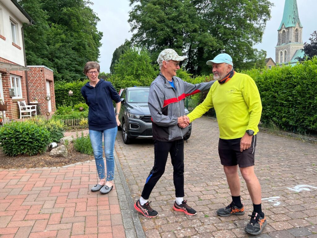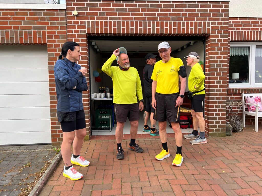Hausherrin Anette hat mit Gerd alles perfekt vorbereitet, und ich kann nach mehr als 10 Jahren wieder Kurt begrüßen! Wir liefen damals oft bei Carsten in Lilienthal, er hat seine „längere Laufpause“ jetzt beendet
