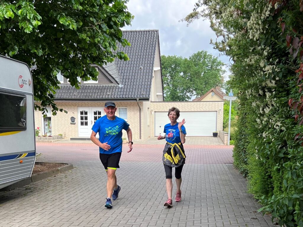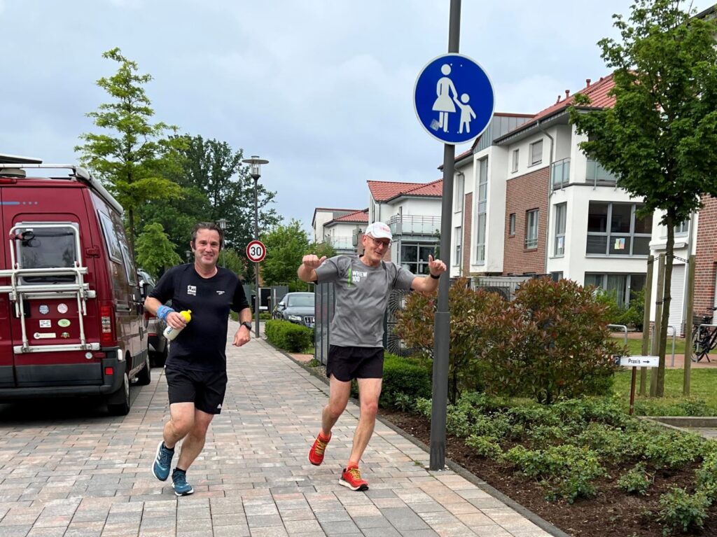 … und das ist eine Überraschung, Anette lief auch ein paar Kilometer mit, hier in Begleitung von Manfred, der etwa 26 km zurücklegte