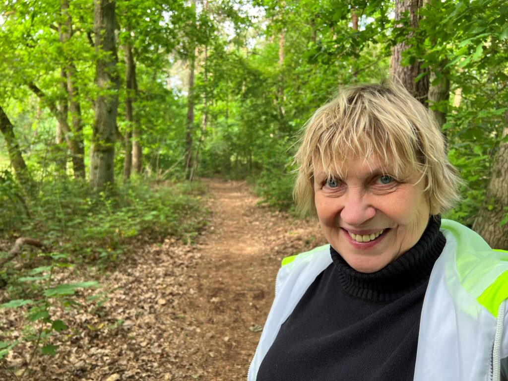 Dann geht’s links ab in den Wald mit den späteren Siegern Eva und Benedikt, in der Mitte Günter