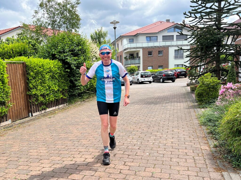 Dirk feiert hier ebenfalls seinen Zieleinlauf