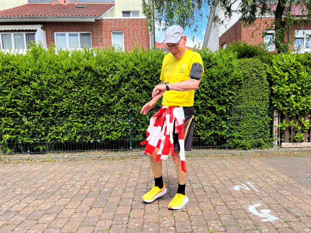 Am Himmelfahrtstag, dem 26. Mai 2022, hatte ich die Gelegenheit, meine 570. verschiedene Marathon/Ultrastrecke zu finishen, denn Gerd hatte in Wallenhorst seine Garage in einen Marathon-Stützpunkt umfunktioniert! Rahmenstart von 7-9 Uhr, und der frühe Vogel fängt den Wurm!