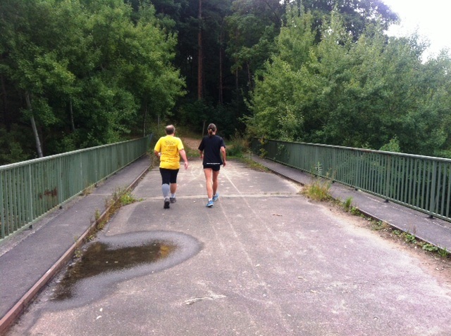Als ich eine Steigung hochgehe, ruft mir Wolfgang zu, daß das hier eine Laufveranstaltung ist, und ich drohe ihm an, ihn bei nächster Gelegenheit beim Gehen zu fotografieren.