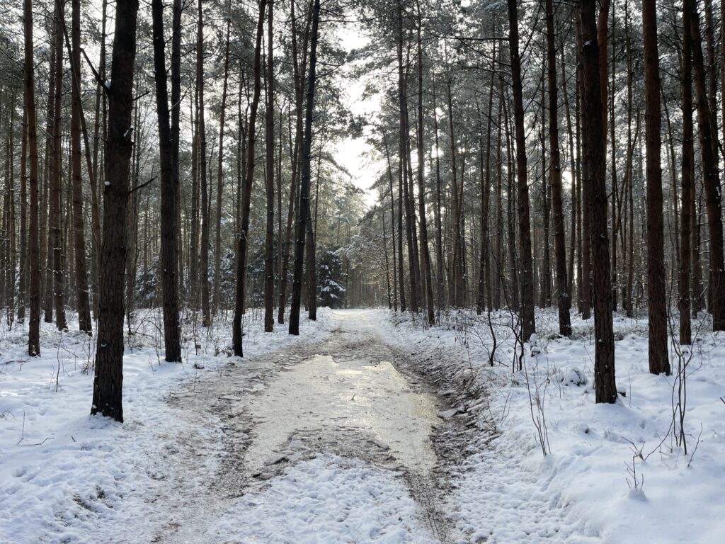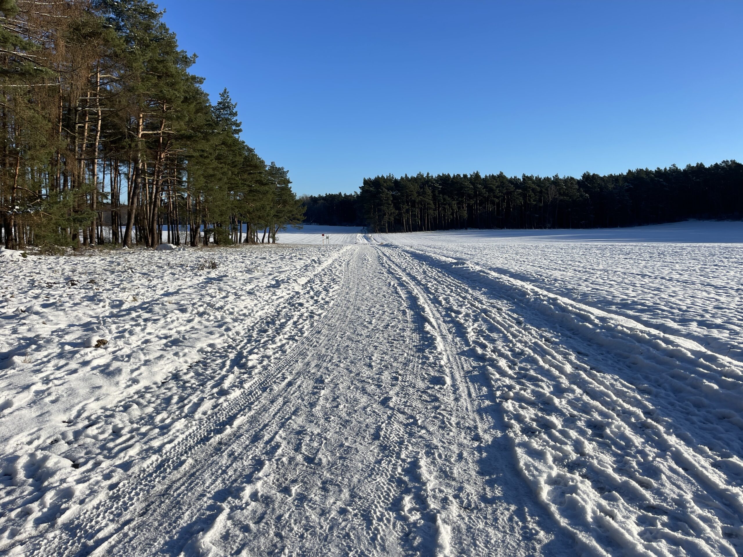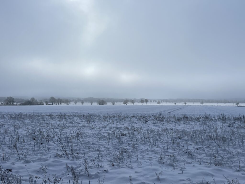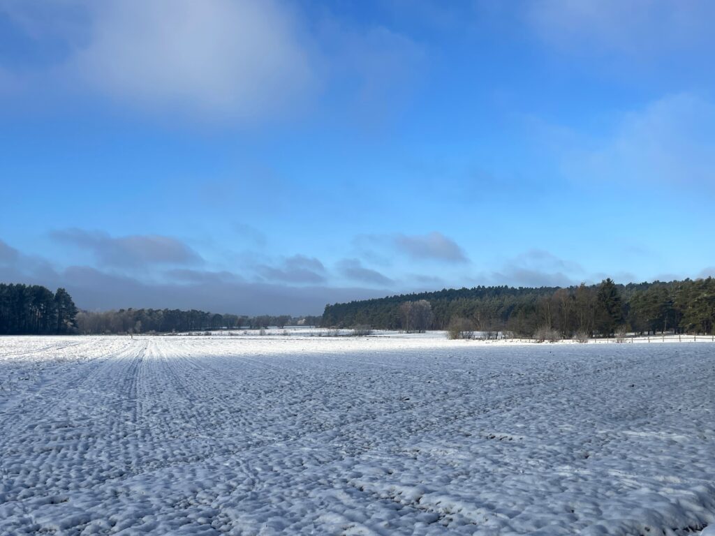 Ich habe jetzt noch 1,5 km vor mir, da hinten am Waldrand führt die Strecke entlang