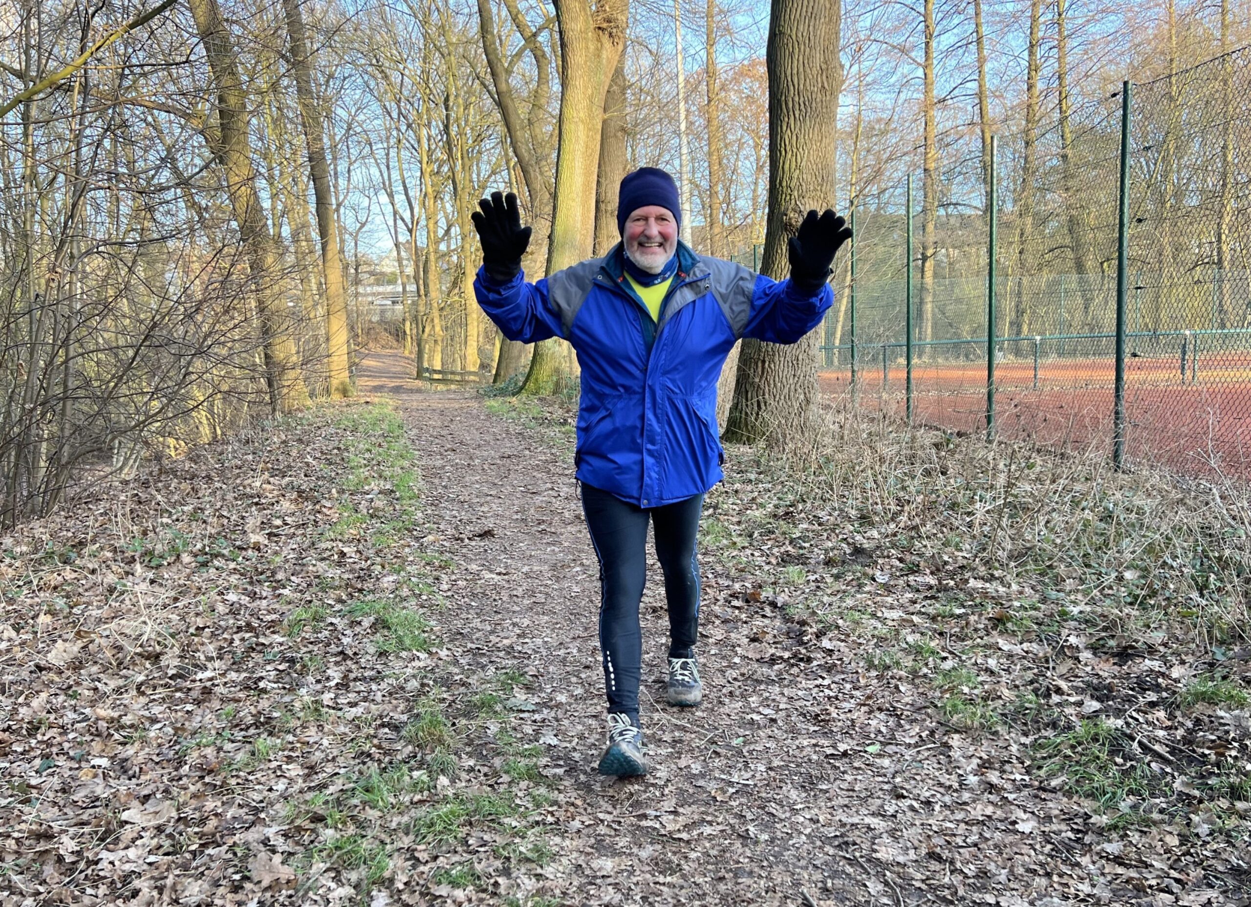 Einzelläufer Dirk holt mich ein, und wir plaudern ein bißchen