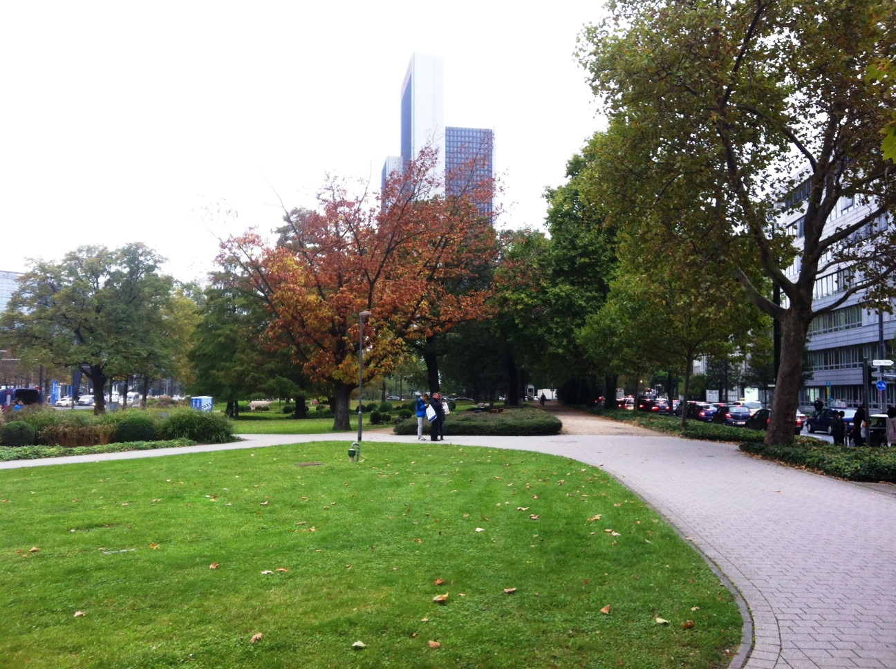 Weiter ging’s vorbei an der alten Oper auf die förmlich von Touristen und Einheimischen überlaufene Zeil, die Haupteinkaufsmeile der Stadt, und zur historischen Hauptwache. Dann wurde es schlagartig ruhiger als ich das Westend mit den gewaltigen Hochhäusern durchquerte,