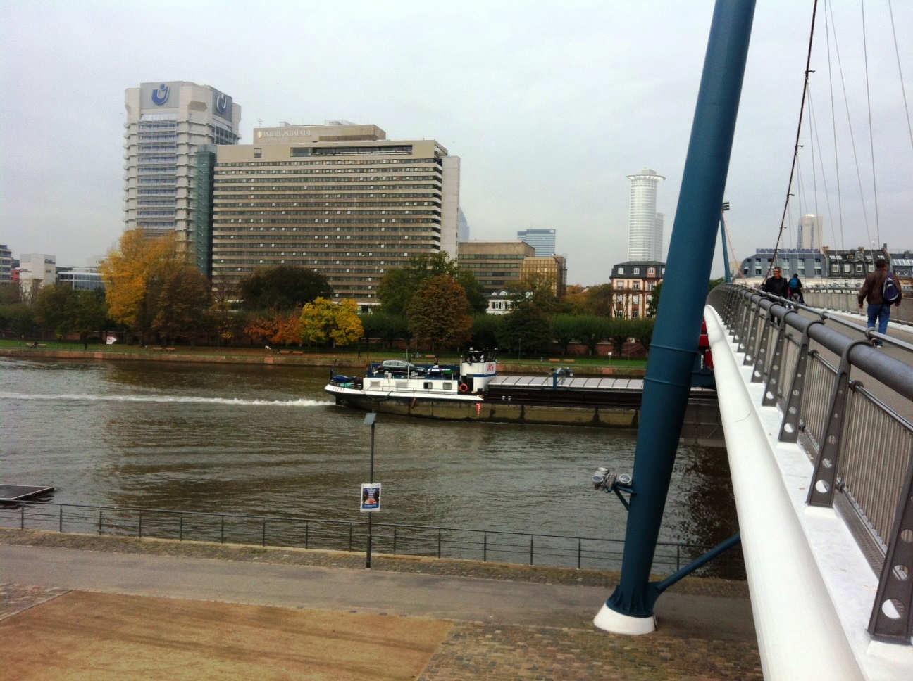 Am Freitag war es auf der Marathonmesse auch noch entspannt und relativ leer. Am Sonnabend Morgen gönnte ich mir ein späteres Aufstehen und nahm mir vor, Frankfurt am Main noch einmal neu zu erkunden. Vor 40 Jahren war ich hier schon mal 3 Monate für meine damalige Firma, die alte AEG, aktiv, am Südufer des Mains, Theodor Stern Kai.