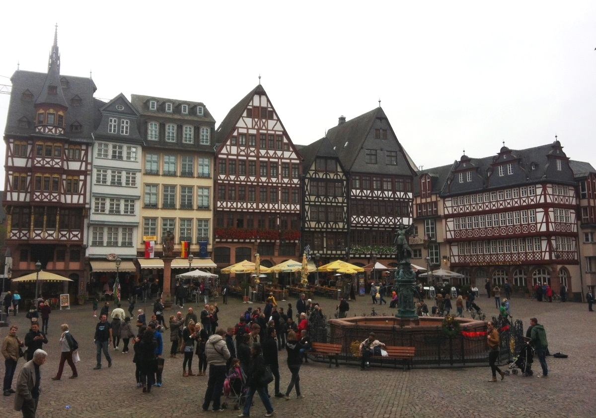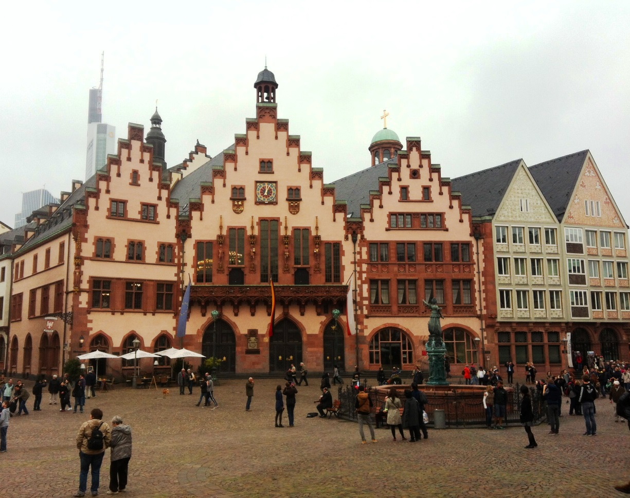 Wieder am Nordufer hat man sofort den Römerberg mit dem Frankfurter Römer im Blick, einem der schönsten und ältesten Rathäuser Deutschlands.