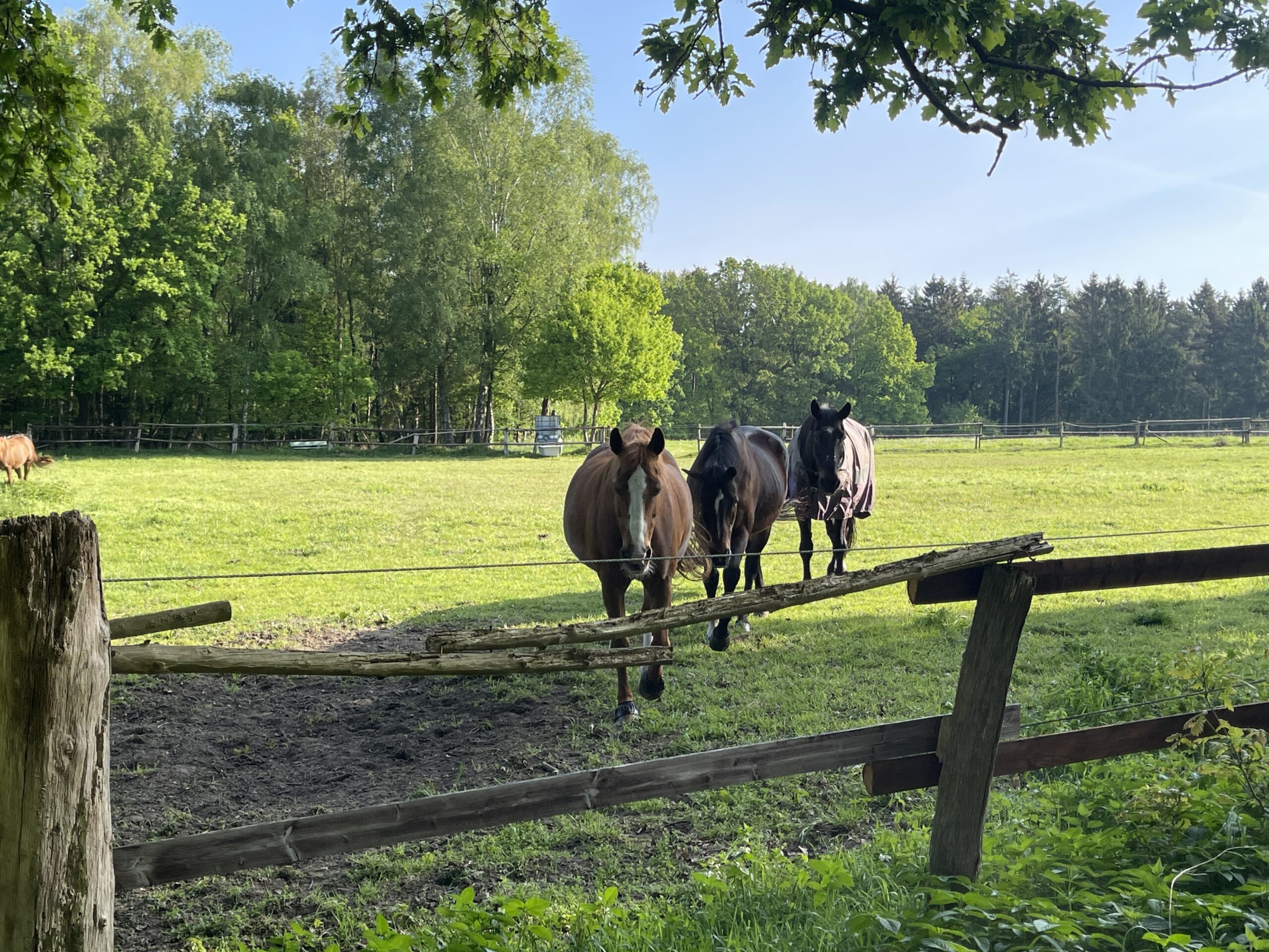 Zur gleichen Zeit bin ich auf meiner zweiten Runde schon in Ketzendorf scharf nach links abgebogen und die Pferde sind neugierig!