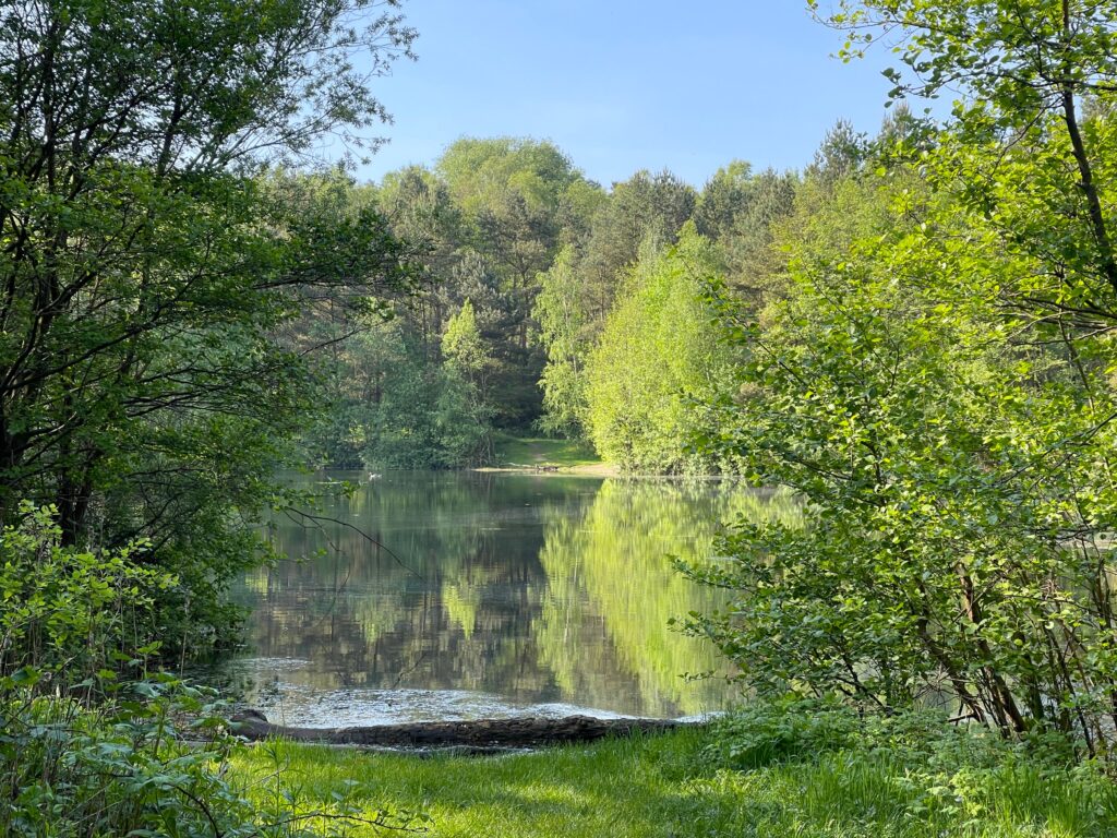 Ich bin wieder im Wald, nach 2 km passiert man einen kleinen See, der wohl aus einer früheren Kiesgrube hier entstanden ist