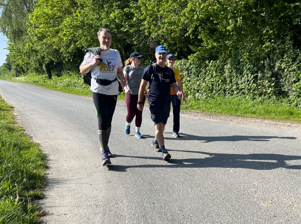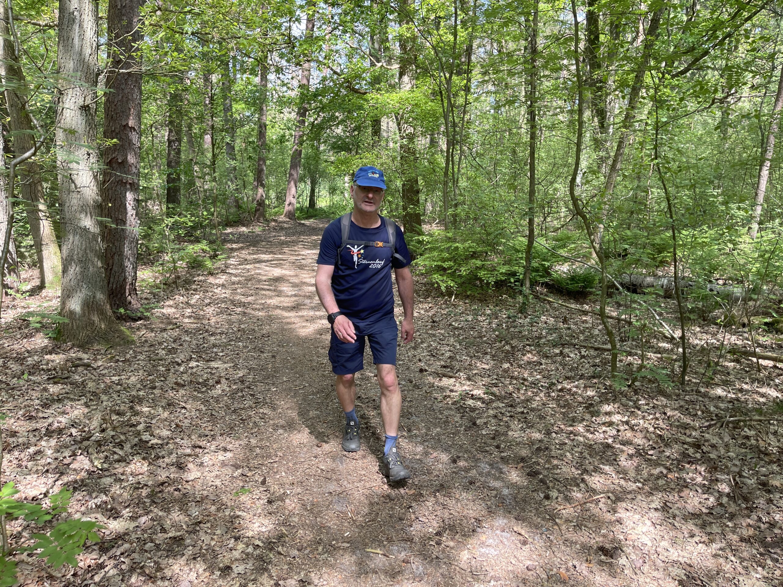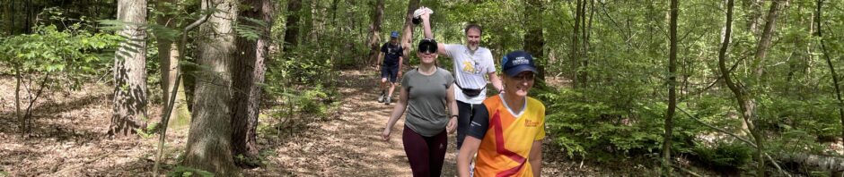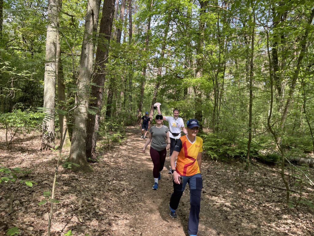 Hier sind wir mitten auf der Waldstrecke, ich treffe die von mir schon lange vermißte Vierergruppe, sie sind fröhlich unterwegs …