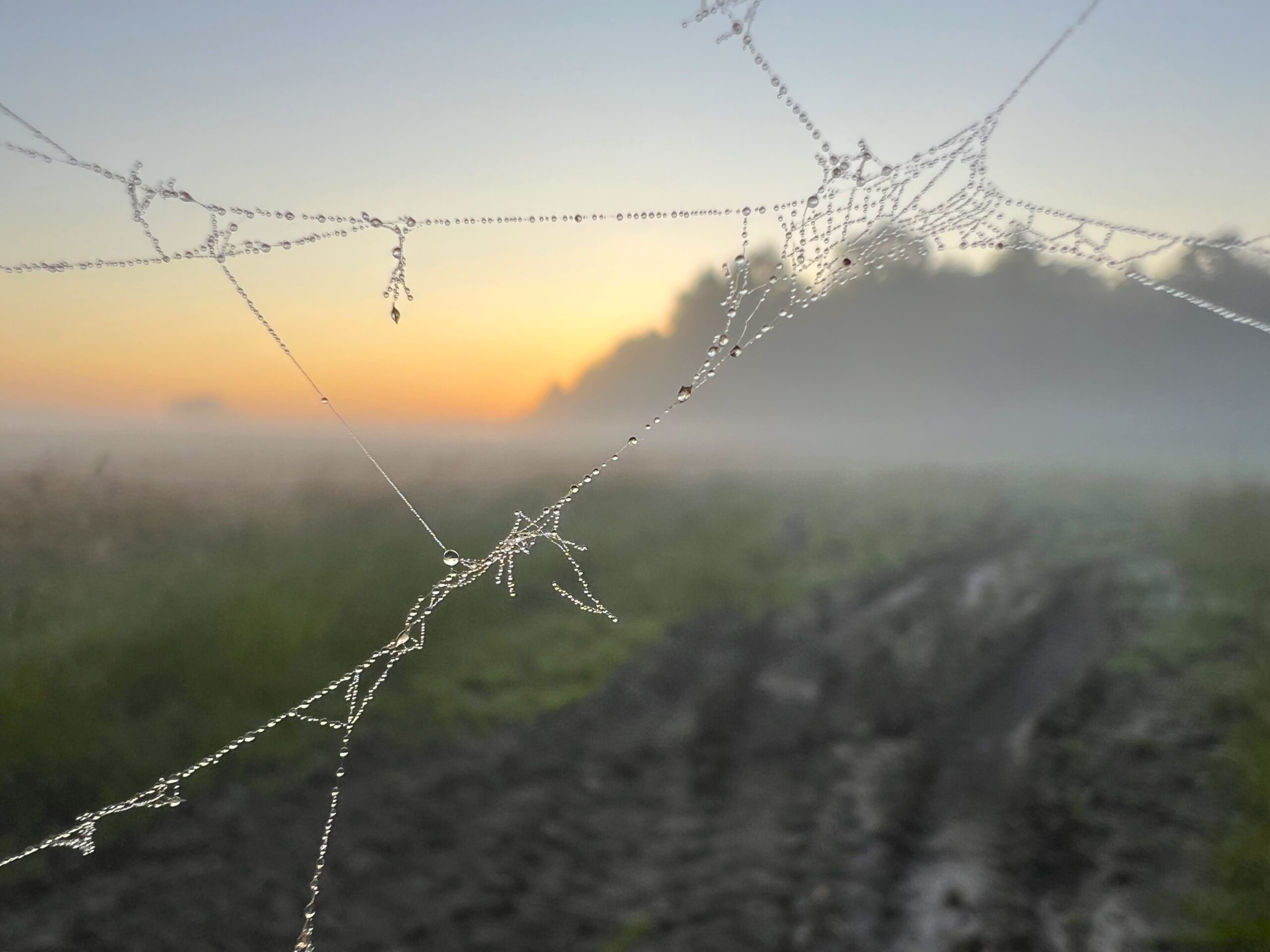Gunla ist Spezialistin für diese Fotos, ein Spinnennetz mit silbern glänzenden Tauperlen, ein unnachahmliches Kunstwerk der Natur!