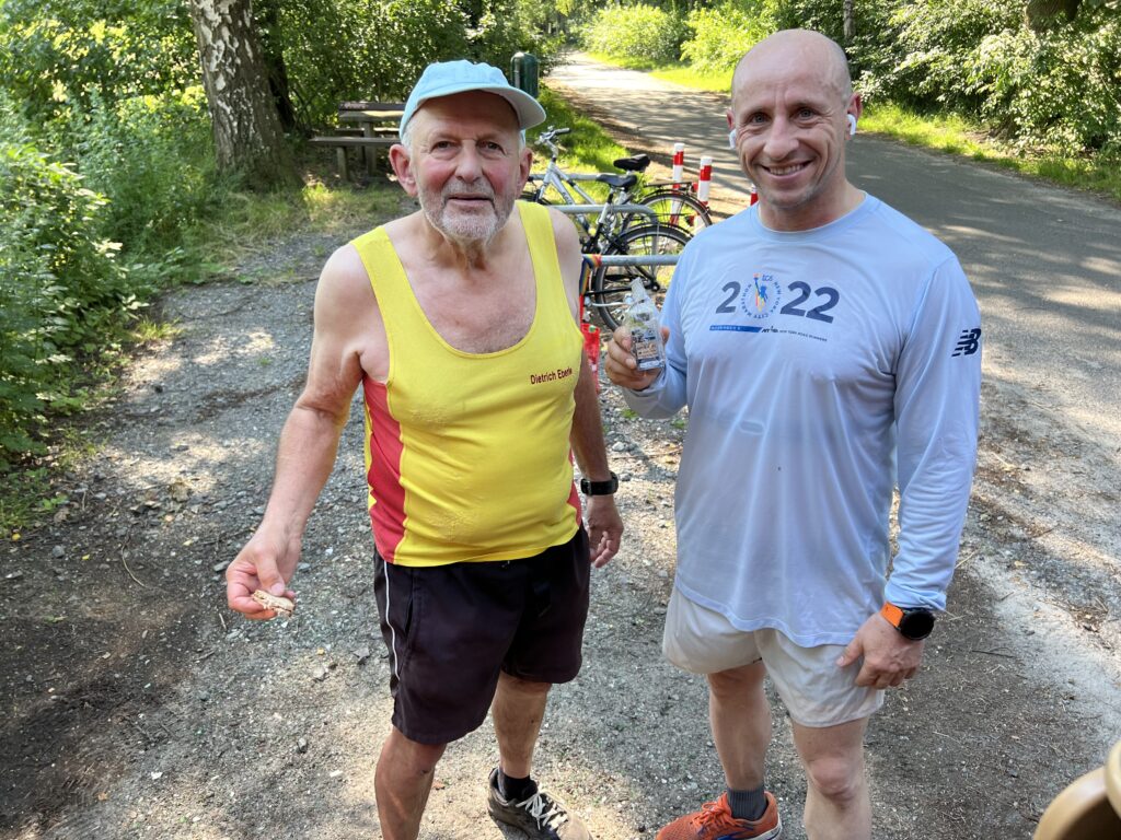 Rabea und Christoph haben auch die 45 er Ultrawertung beendet. „Welche Zeit hast du gestoppt?“