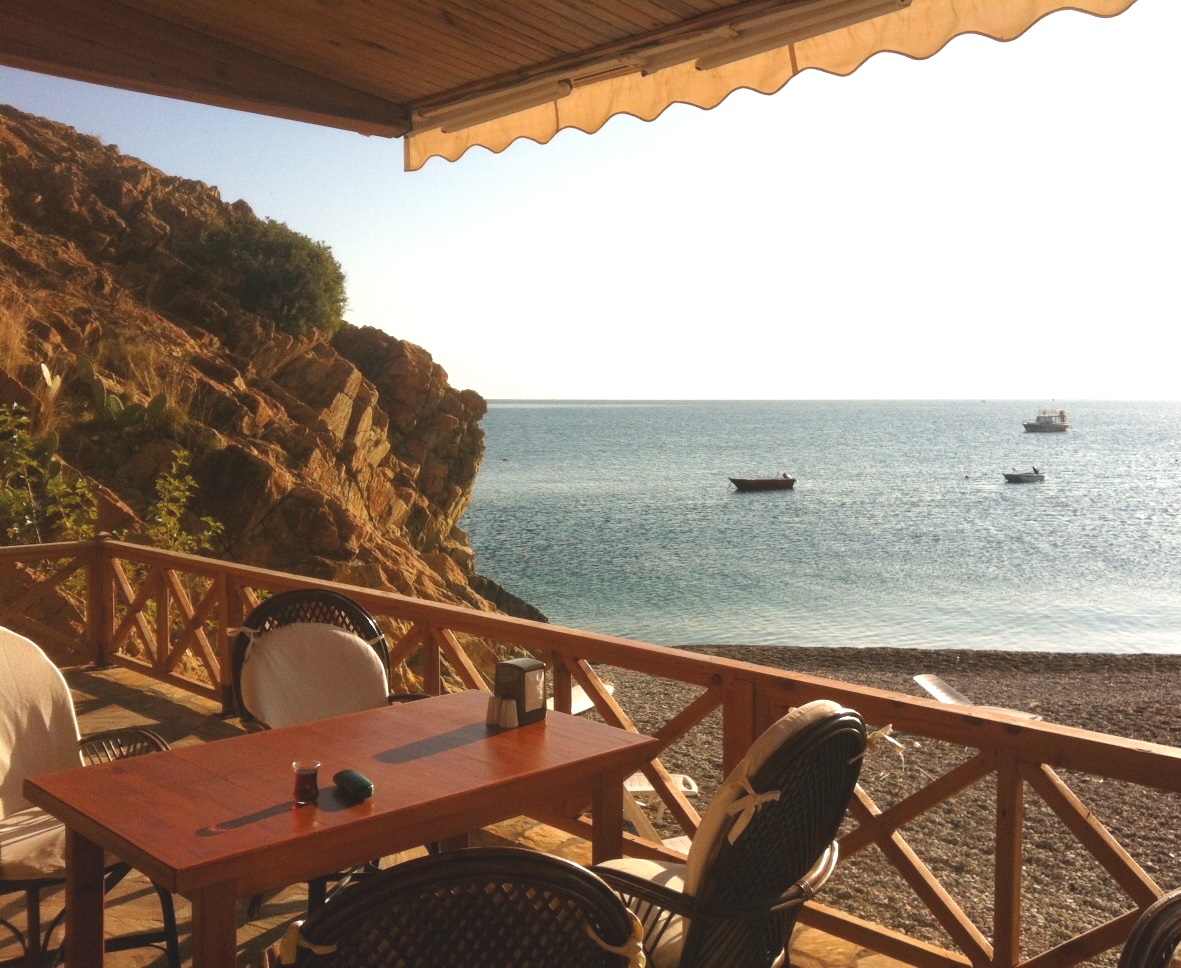Adrasan liegt an einer stillen Bucht, das Hotel ist direkt am Meer, Bungalows im Blockhausstil, sehr schön.