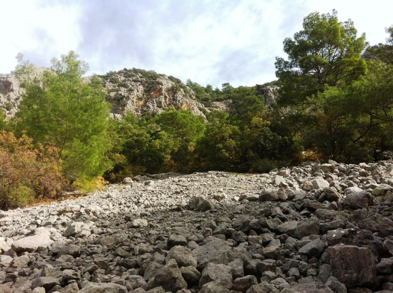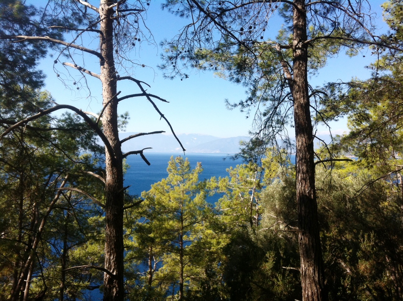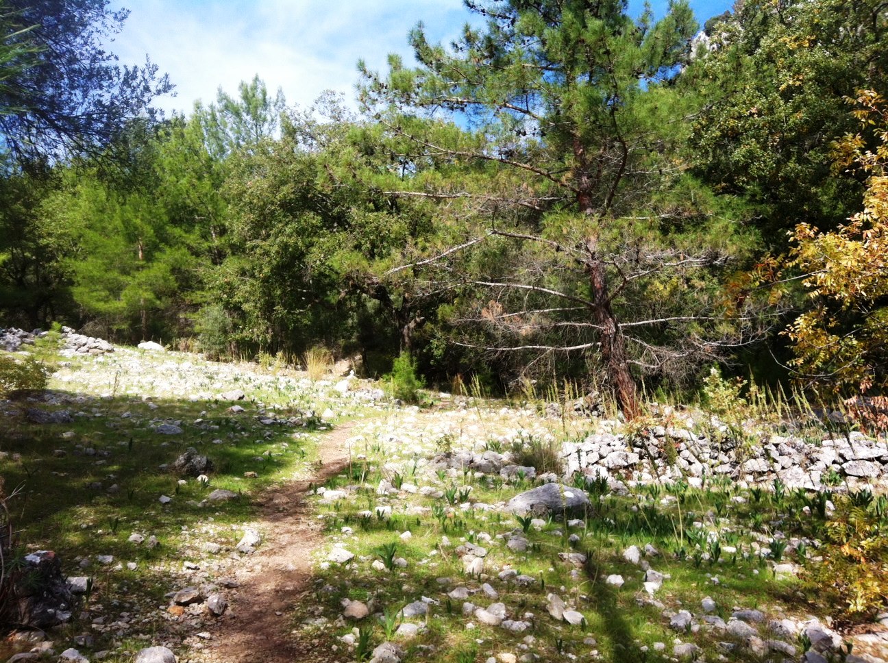 Der Start ist heute direkt vom Hotel. Die Wanderung führt auf Wanderpfaden und Waldwegen durch Pinienwald mit immer wieder kurzen Anstiegen. Es geht entlang eines Baches, teils folgen wir dem Lykischen Weg, begegnen Hirten mit ihren Ziegen.