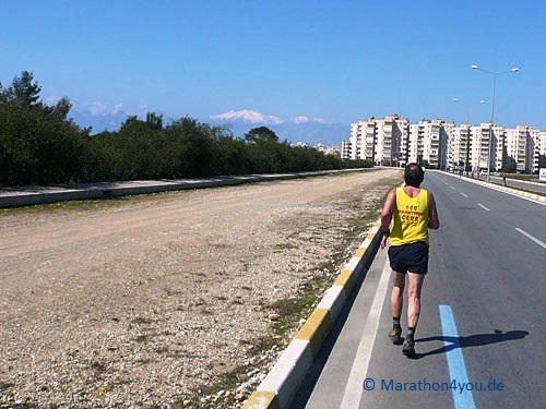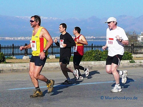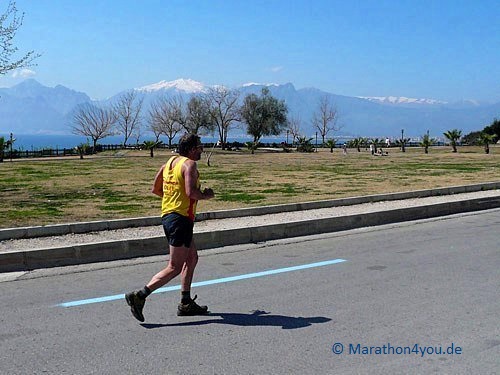 nur einen Steinwurf vom urigen alten Naturhafen entfernt. Die Zimmer sind nagelneu, und mit WLAN kann man gut Verbindung nach Hause halten. Ich bummele noch etwas durch die Altstadt und hinunter zum Hafen mit vielen sehenswerten alten Holzbooten. Am Horizont erkenne ich die imposante Kulisse der Küstenberge des Taurus, sie sind mir natürlich schon bekannt durch meine beiden Antalya-Marathons im März der Jahre 2006 und 2007. Die folgenden 4 Fotos verwende ich mit freundlicher Genehmigung von Marathon4you. © Marathon4you.de www.marathon4you.de