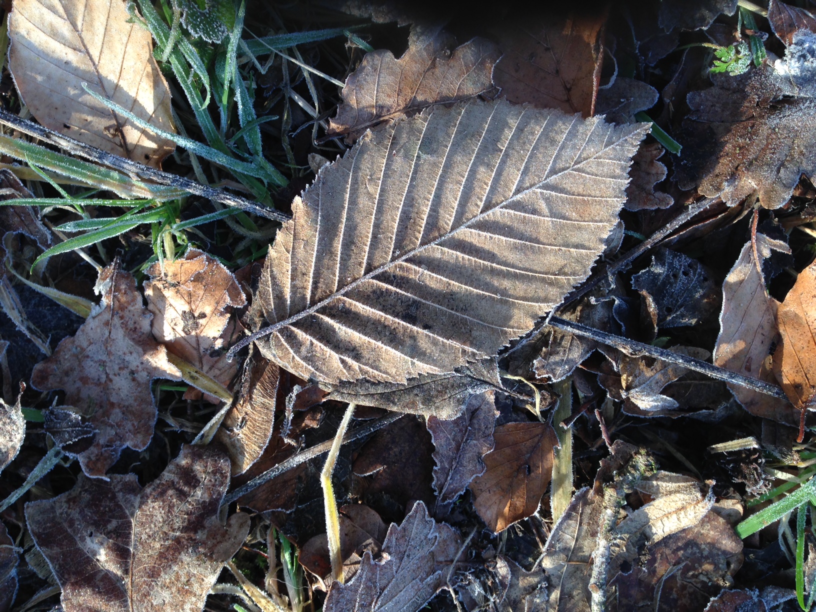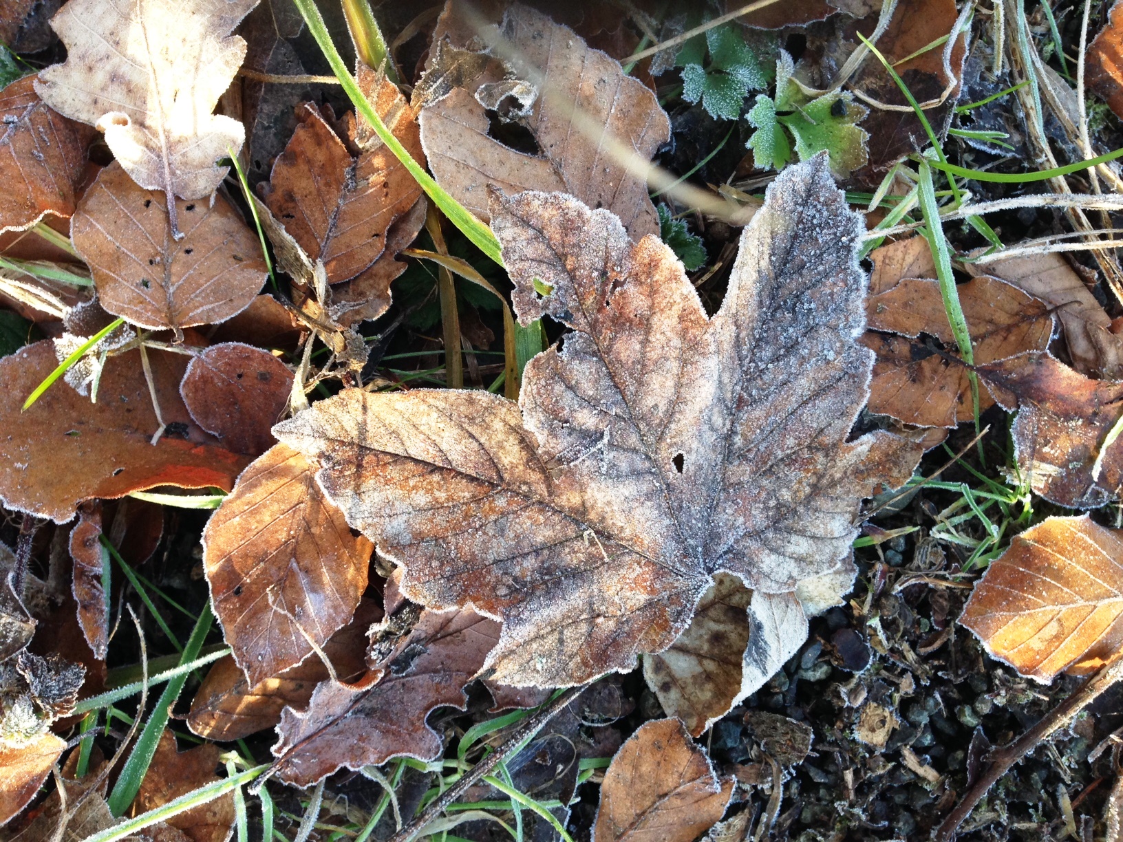 Es liegt noch Rauhreif auf den Wegen, im Wald und auf den Feldern, es ist unter 0 Grad.