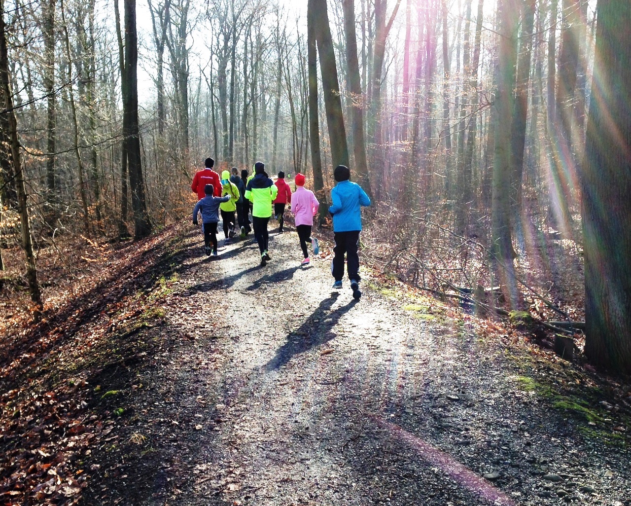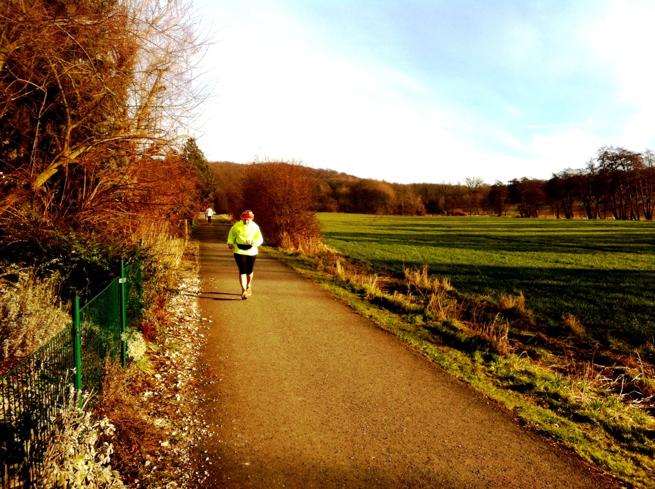 Auch immer mehr Spaziergänger und auch ganze Läufergruppen sind nun bei herrlicher Sonne unterwegs.