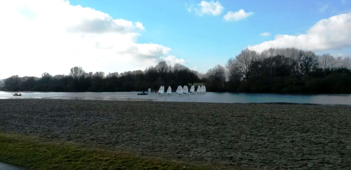 Bei totaler Windstille und aufgehender Sonne starten die 8 Teilnehmer, 2 werden vorzeitig aufhören, die anderen laufen locker zuende.