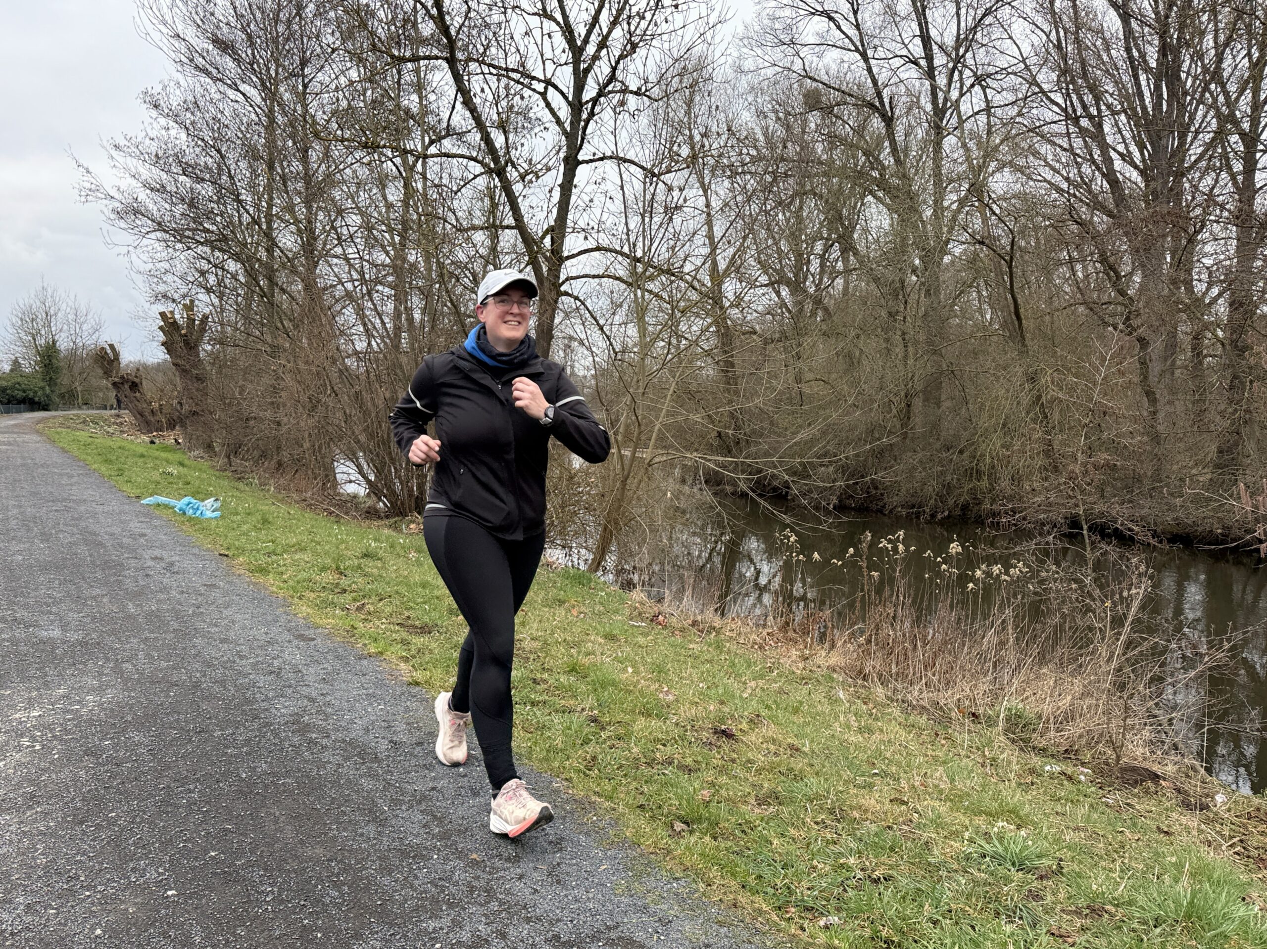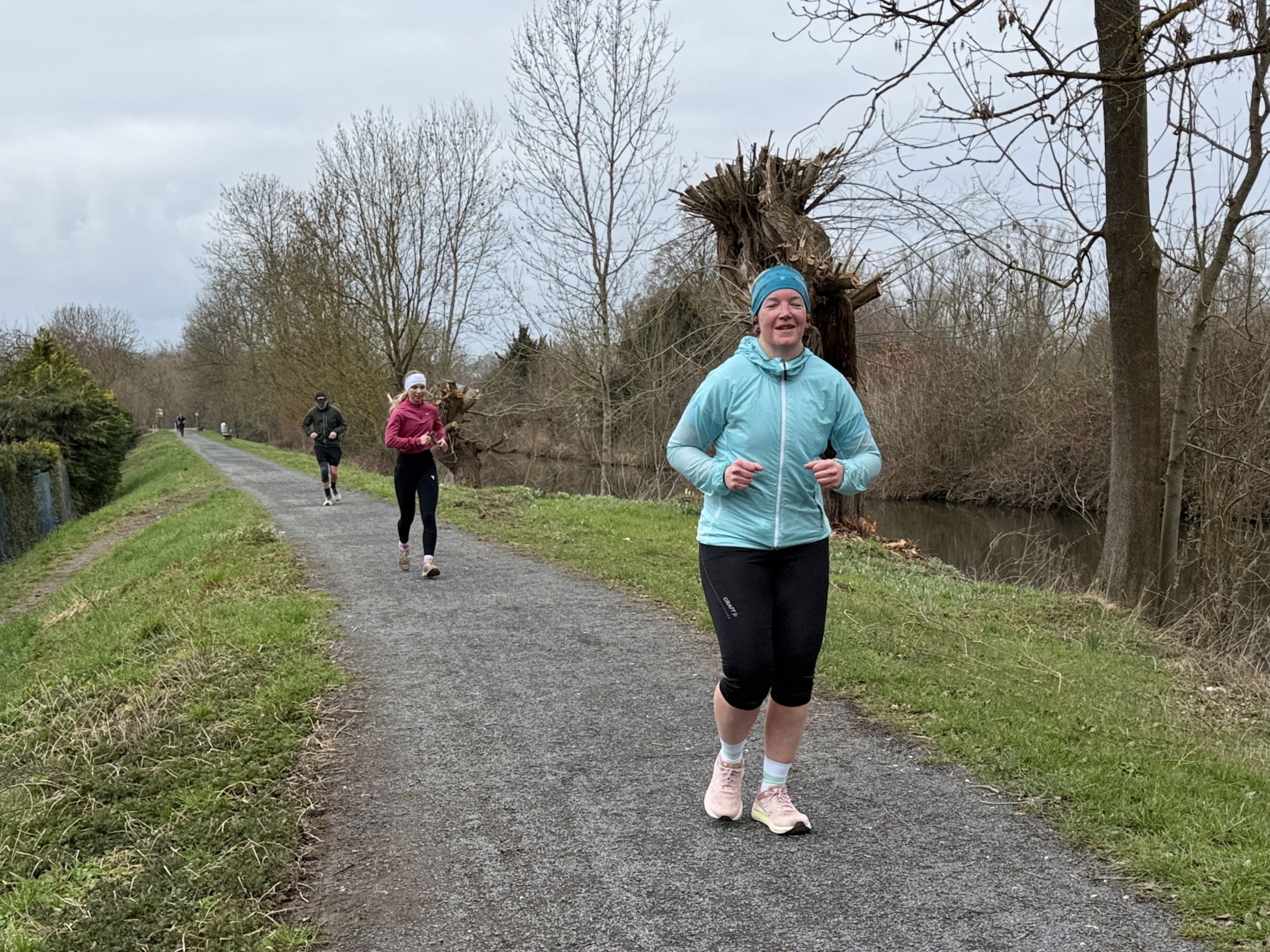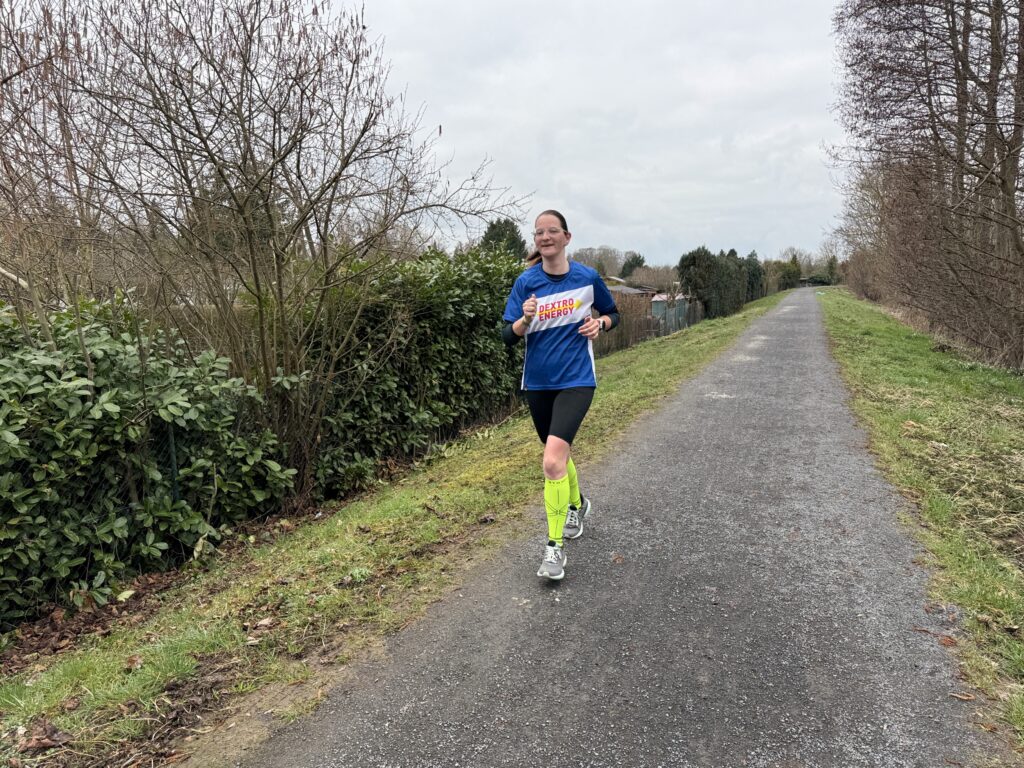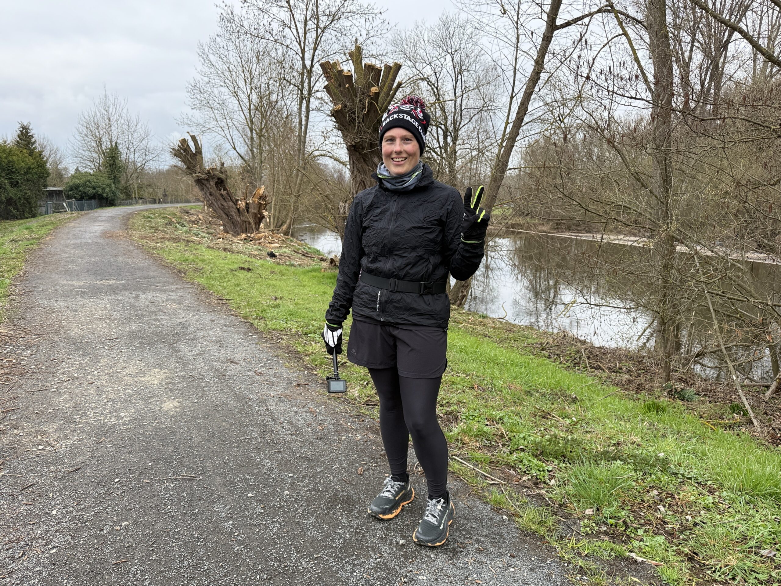 … munter weiter, Sara und ich auf dem Rhumedeich, Sara ist die Rekordteilnehmerin hier beim Tageslichtultra, sie hat an allen 13 Läufen teilgenommen 😮 Glückwunsch!