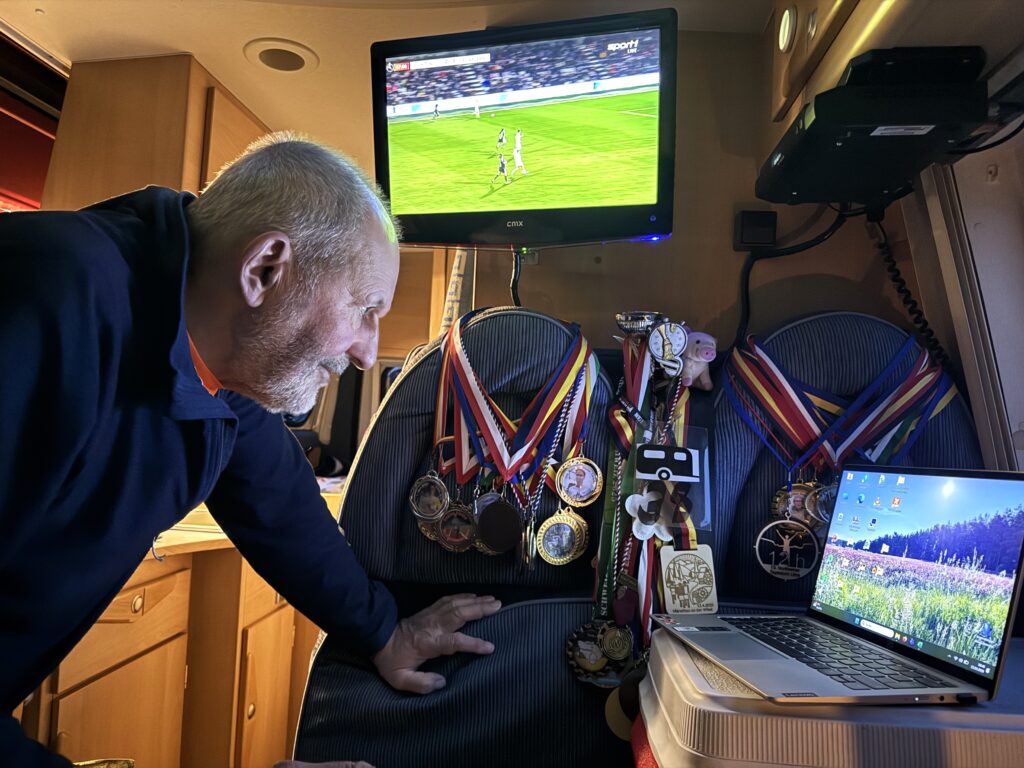 Hier kommt Joachim, er hat nur eine Teilnahme weniger als Tochter Sara! Im Hintergrund sieht man unser Wohnmobil auf dem Stammplatz an der Rhume! 🙂