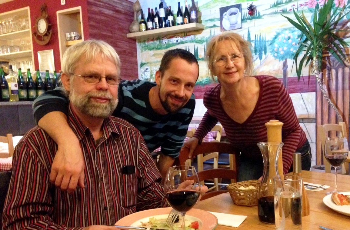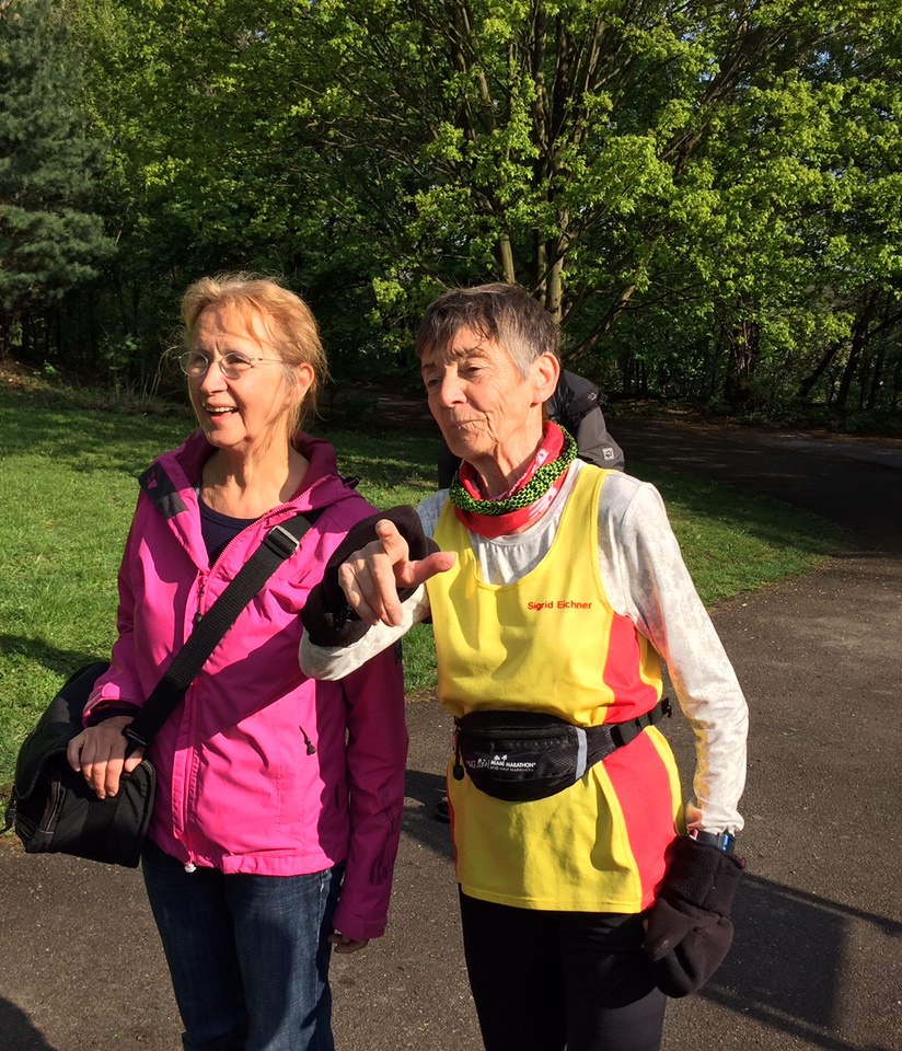 Die LG Mauerweg Berlin und Sigrid Eichner für den 100 Marathon Club haben in diesem Jahr gemeinsam den Wolfgang Zieger Gedächtnismarathon am Prenzlauer Berg veranstaltet. Wolfgang hat diese Läufe, auch im Plänterwald, über einige Jahre als Kampfrichter und Rundenzähler mit betreut. Gunla und ich wollten das Wochenende entspannt angehen, und so starteten wir schon am Donnerstag Nachmittag nach Berlin zur Schneeglöckchenstraße. Wir fanden für unser WoMo sogar noch eine Parklücke und gingen dann zu Gunlas Lieblingsitaliener am S-Bahnhof Landsberger Allee. Kaum hatten wir es uns gemütlich gemacht und bestellt, da gesellten sich auch Sigrid und Hajo zu uns, und wenig später eine Überraschung: