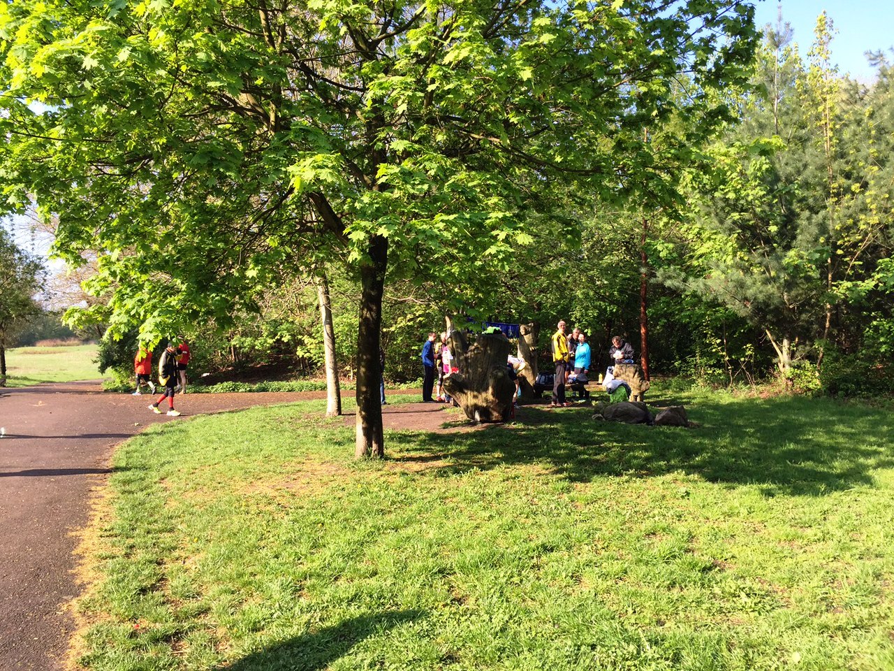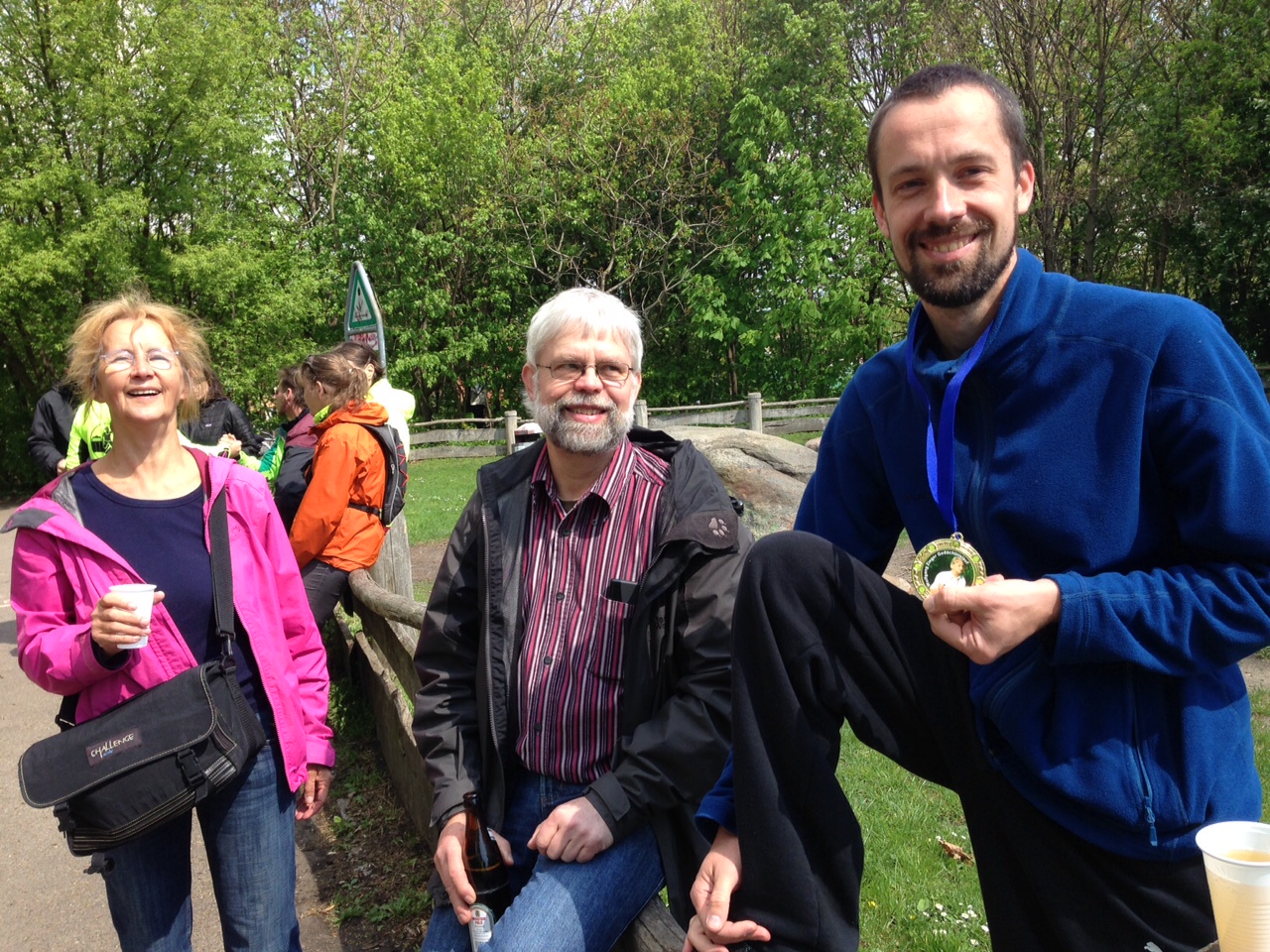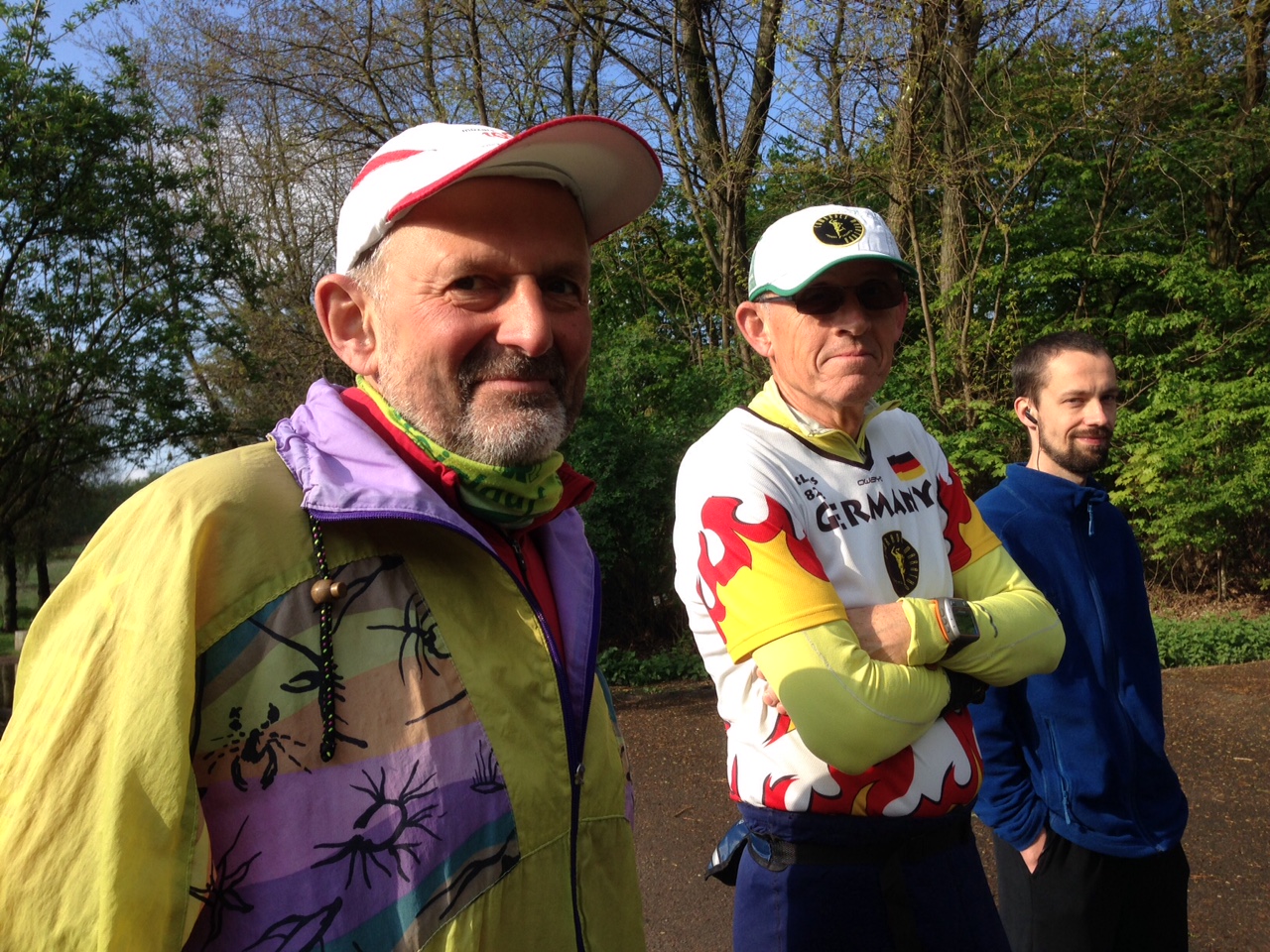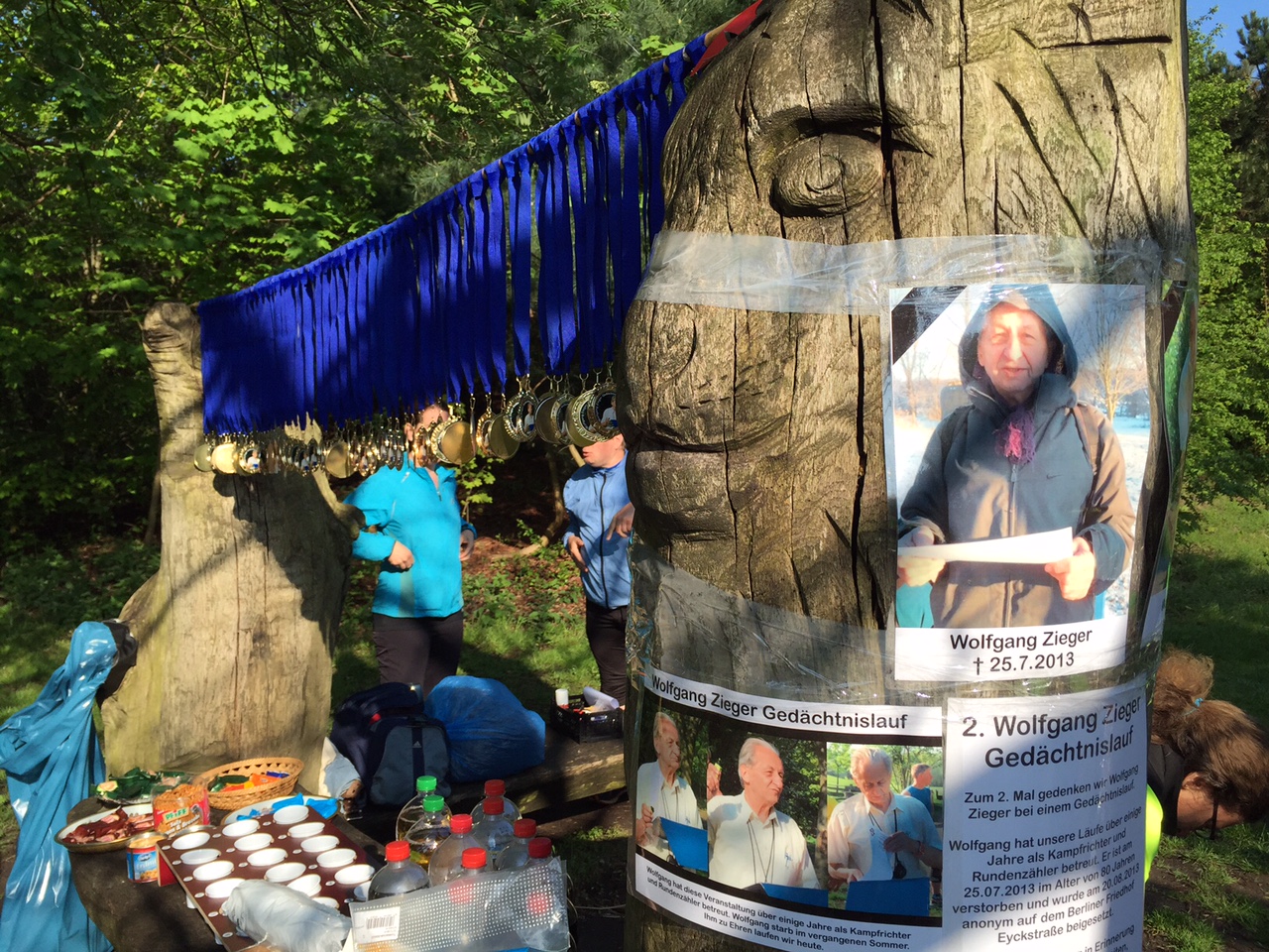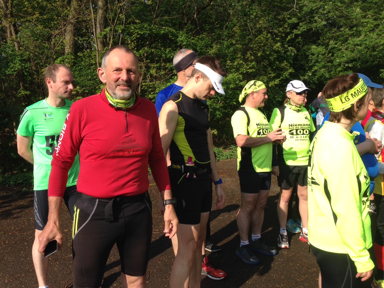 Wolfgang Ziegers Schwester Marianne kam auch mit ihrer Familie, sie hatte kürzlich von dem Lauf erfahren und Kontakt mit Sigrid aufgenommen. So hatten wir also einiges zu erzählen. Am nächsten Morgen trafen sich dann 34 Teilnehmer um 9 Uhr bei herrlichem Wetter am Start der Strecke im Volkspark Prenzlauer Berg,
