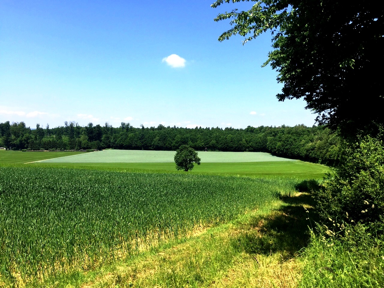 Heute wird die Sonne herunterbrennen bei über 30°, und viele Passagen dieses schönen Landschaftslaufes führen über freies Feld, ab und zu aber auch durch schattenspendenden Wald.