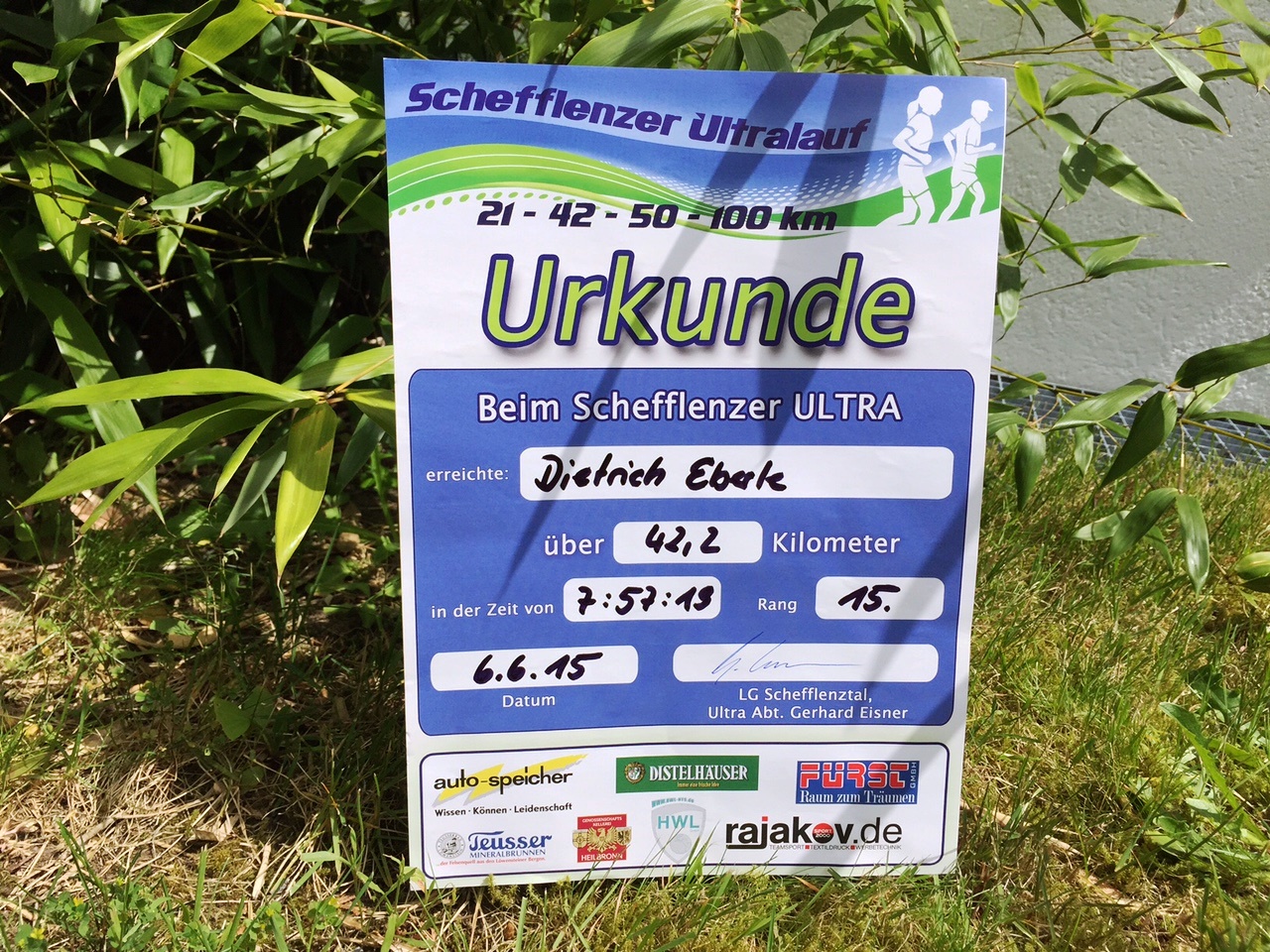 auch ich erreiche das Ziel und bekomme sofort die Urkunde und das berühmte Banner.