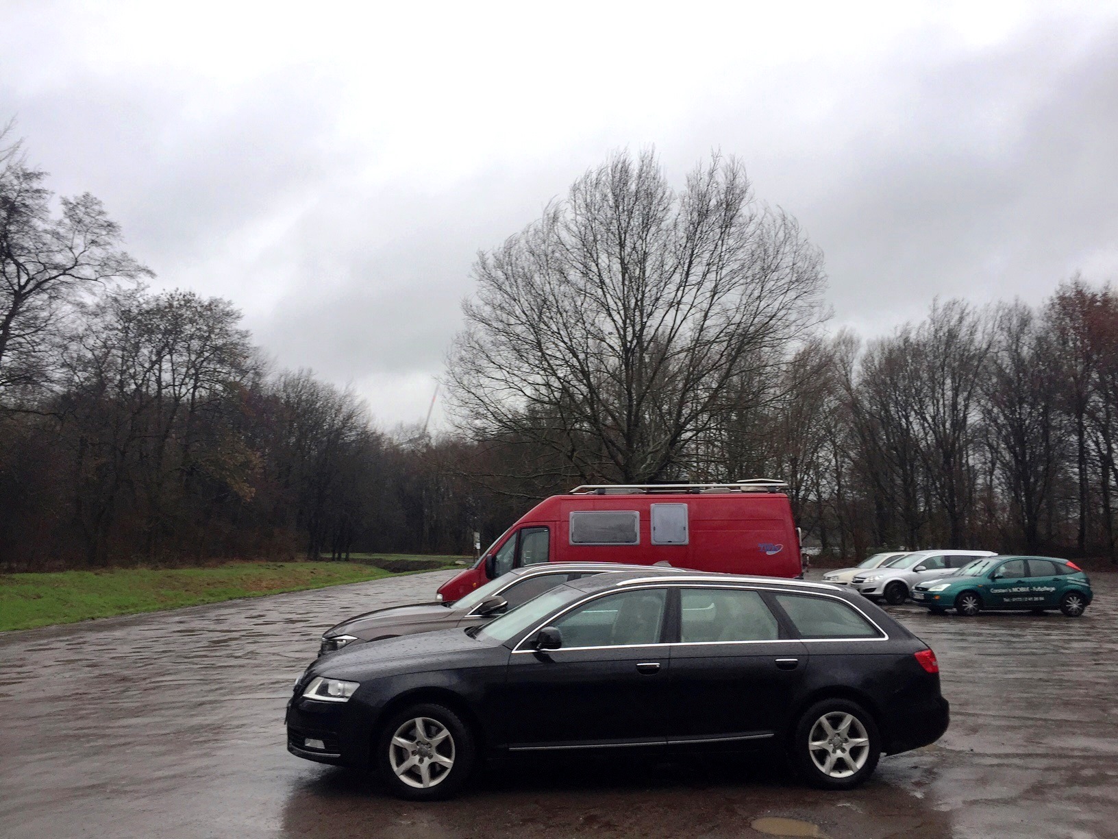 An diesem Tag hatte der Dauerregen bereits bei der Anfahrt begonnen, und als ich auf dem Parkplatz am kleinen Bornhorster See ankam, hatte Gerhard schon die Verpflegung aufgebaut.