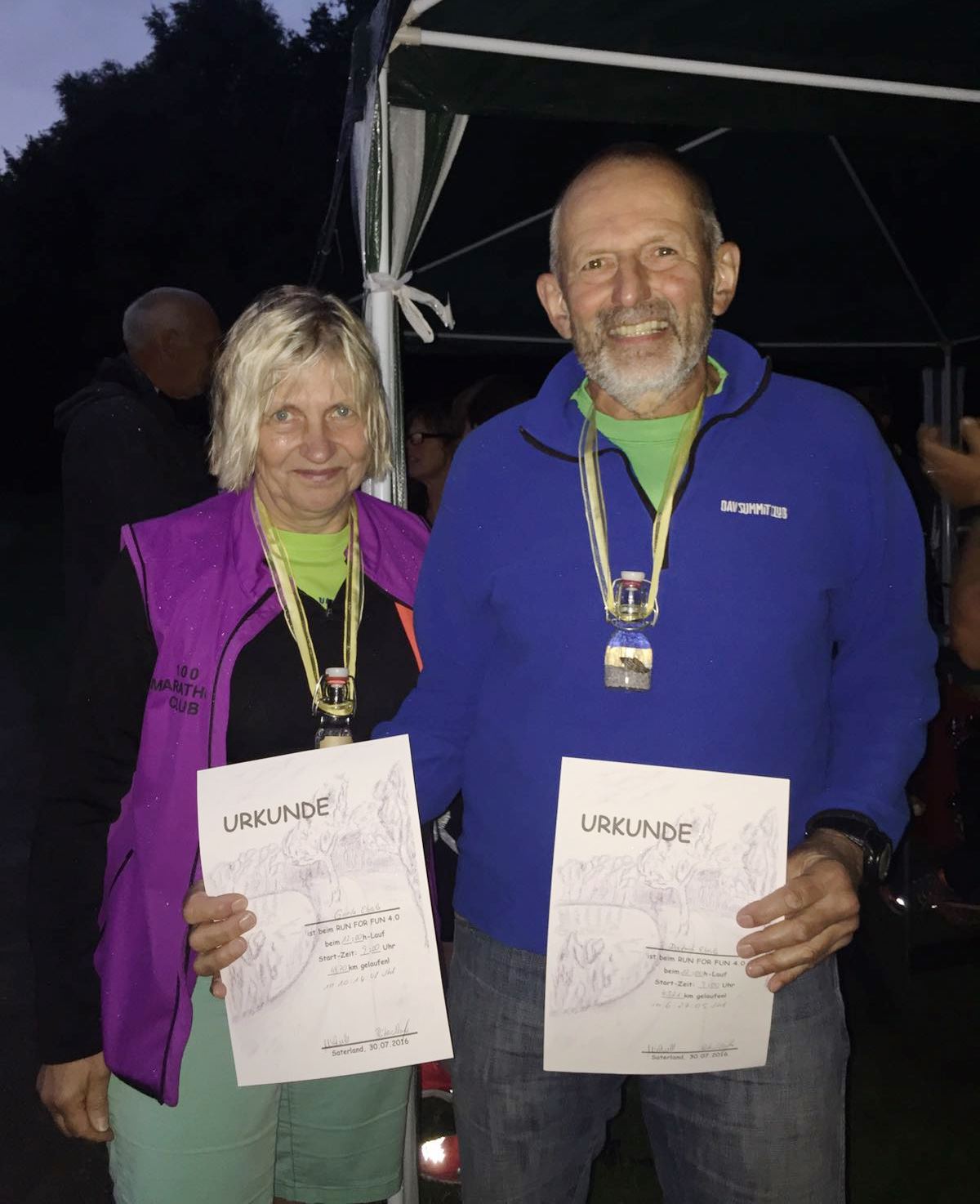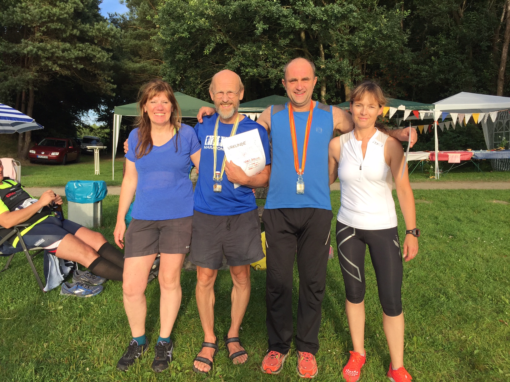 … und auch Gunla und ich bekommen unsere 12 h-Urkunden und die Medaillen-Sonderedition Hollener See!