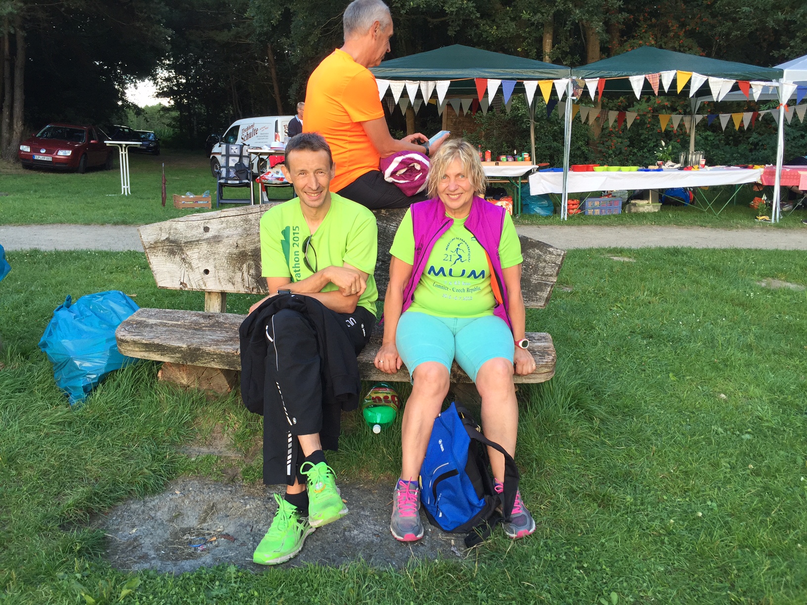 … und um 9 Uhr starten dann die Läufer über die 3, 6 und 12 Stunden. Rechts neben Gunla die internationalen Gäste aus Puerto Rico, (USA-Außengebiet).