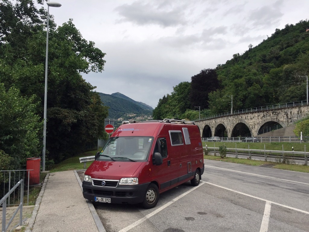 Einige italienische Laufkollegen hatten ihre WoMo’s schon geparkt, in dieser relativ ruhigen Sackgasse, mit reichlich Parkplätzen für die Badegäste.