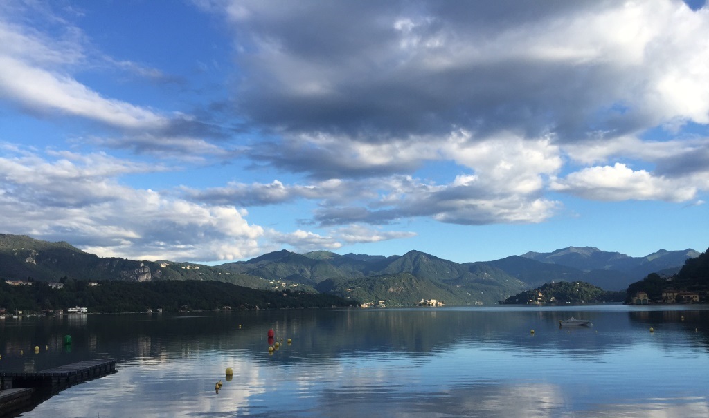 Ich nahm Kontakt mit Paolo Francesco Gino auf, dem Präsidenten des italienischen Clubs, und meldete mich nach einiger Bedenkzeit wild entschlossen für die 10 Marathons an. Hier ein Panorama des Lago d’Orta, fotografiert vom kleinen Ort Alzo. (Hinweis: Die meisten Bilder können durch anklicken vergrößert werden)