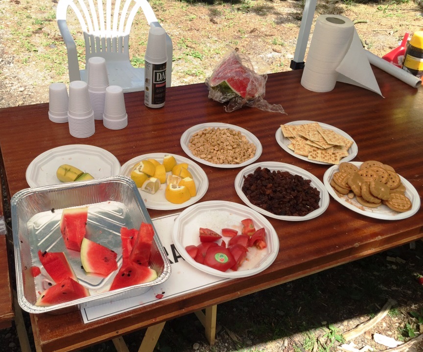 Dafür ist der Verpflegungstisch bei km 5 wieder reichlich gedeckt, …