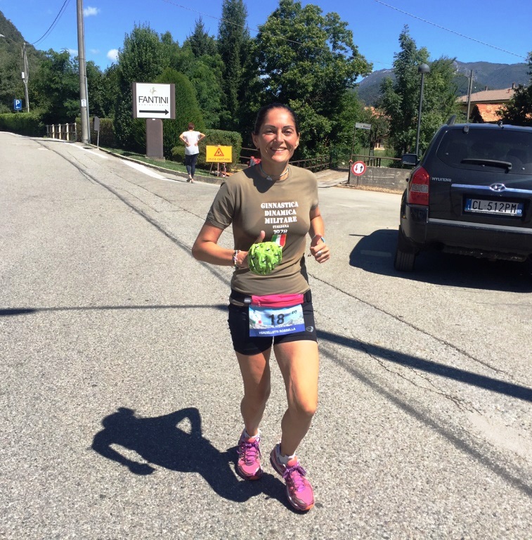 Sivabalan Pandian aus Indien hat mindestens 5 Marathons eingeplant und nimmt schon mal Kontakt zu den Mitläuferinnen auf. Nach ca. 6 km erreicht man Pella, hoch über dem Ort liegt die Kirche Madonna del Sasso auf dem Felsen.