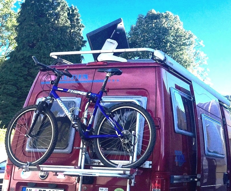 Mein Mountainbike habe ich auch dabei, erstens ist es schön leicht beim ‚runternehmen (gut für meinen Rücken) und für das Gelände sowieso optimal.