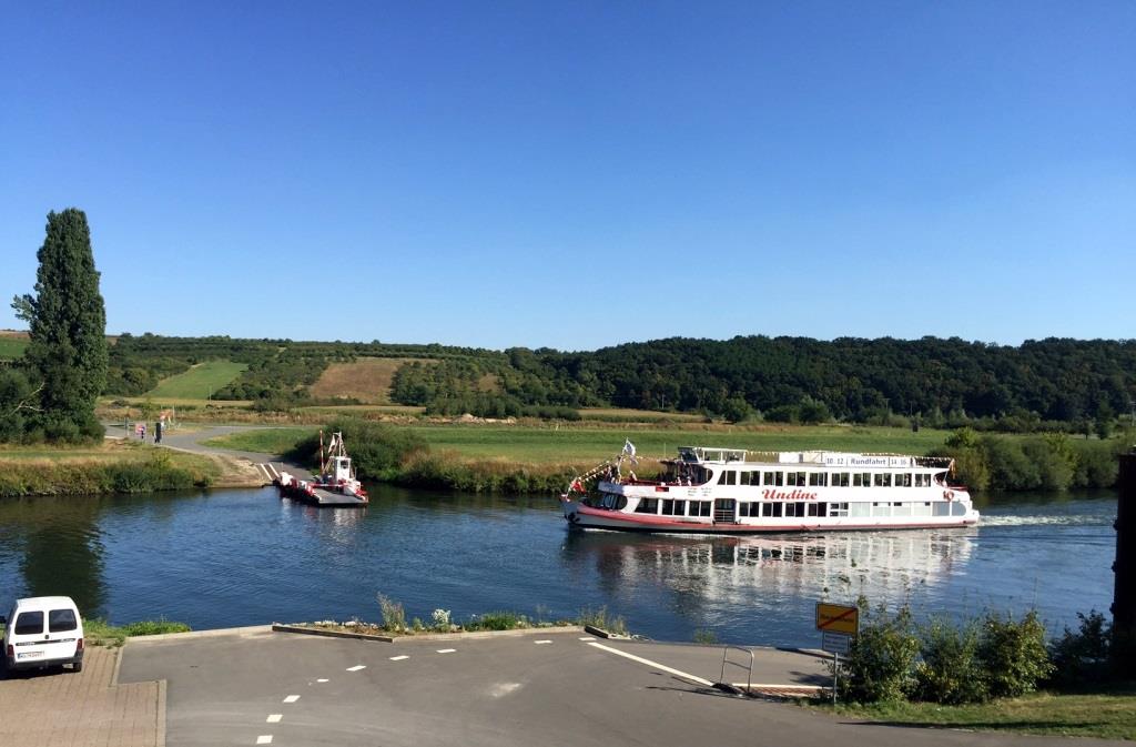 Auch Obereisenheim hat eine Fähre ans Ostufer des Mains, …