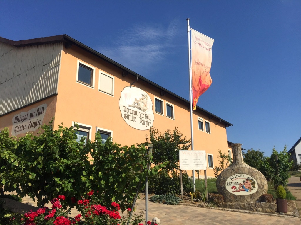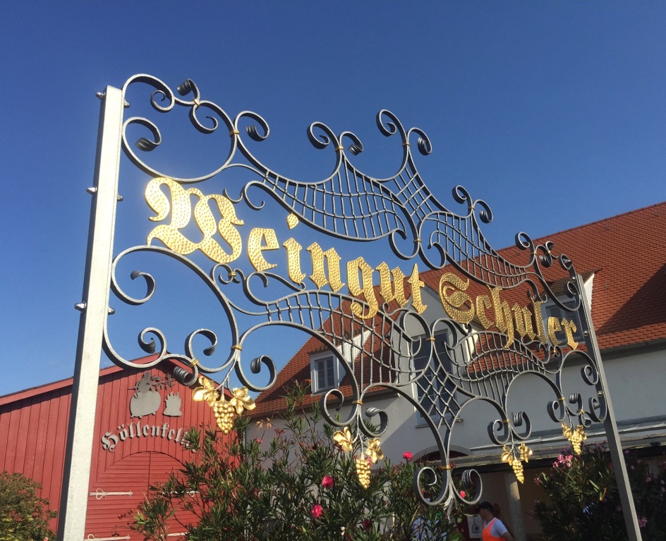 Am nächsten Morgen treffen wir uns vor dem Weingut Schuler zum Höll Marathon. Warum heißt die Weinlage des Ortes Höll? Einer Sage zufolge fehlte in einem Weinkeller immer Wein aus den großen Fässern. Der Kellermeister, ein Mönch, legte sich nachts auf die Lauer und erwischte den Teufel beim Wein trinken. Der Teufel wollte flüchten, aber der Mönch klemmte den Schwanz des Leibhaftigen in der Tür ein. Der Teufel versprach dem Mönch alles für die Freilassung, und der Mönch ließ ihn unter der Bedingung frei, daß er von seiner höllischen Hitze einen Teil auf den Weinbergen von Obereisenheim läßt, damit dieser Wein einzigartig wird. Der Teufel hielt sein Wort. Eine einfachere Erklärung wäre, daß die Arbeit der Winzer in der herunterbrennenden Sonne heiß ist wie in der Hölle.