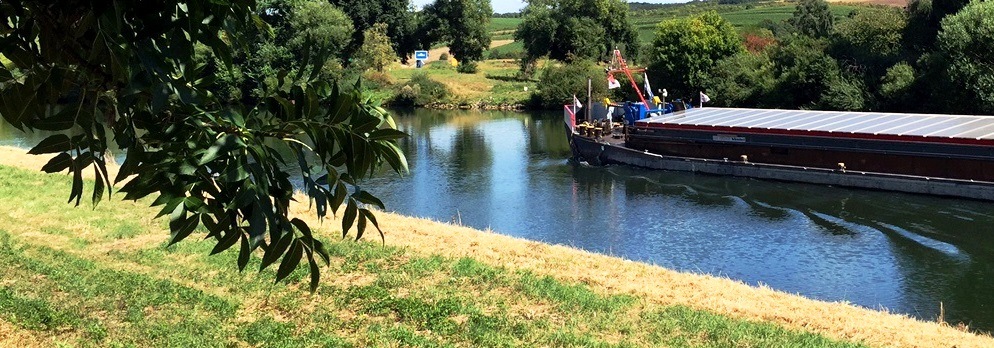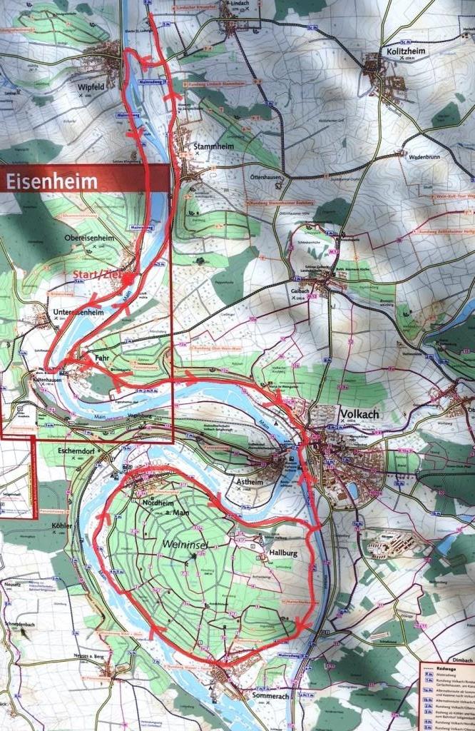 … über Volkach radele ich entspannt auf die „Weininsel“, umschlossen vom Main und dem 1950 bis 1957 auch als „Arbeitsbeschaffungsmaßnahme“ erbauten Mainkanal im Osten. Wie der Name Weininsel schon sagt, Weinberge überall, …