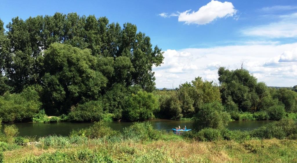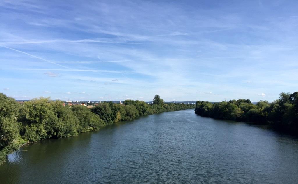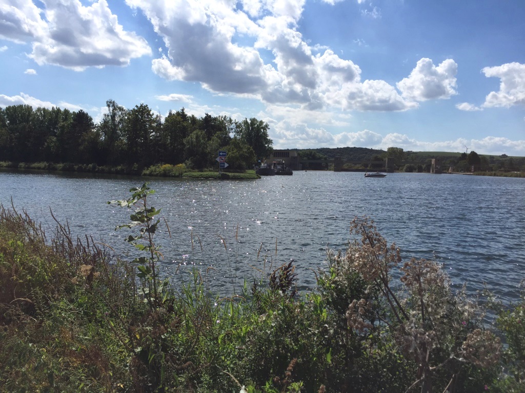 Schön ruhig ist es hier, auf dem Main ist nur ein kleines Boot unterwegs, die Schifffahrt läuft über den Mainkanal im Osten.