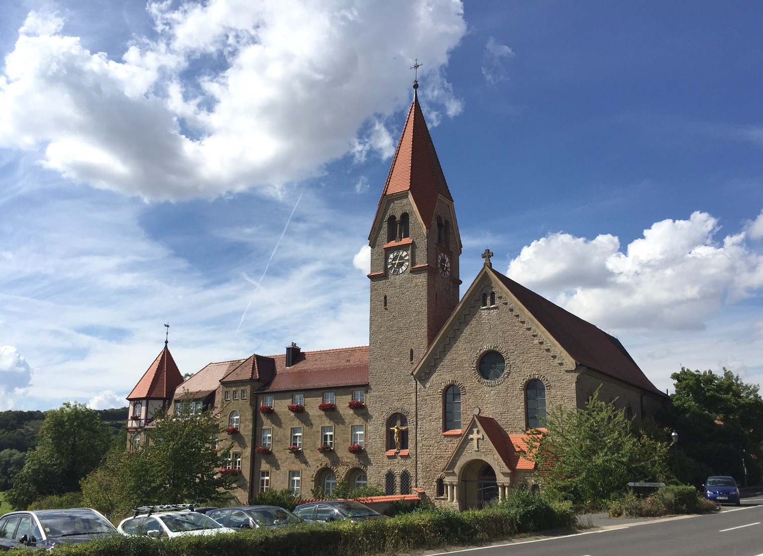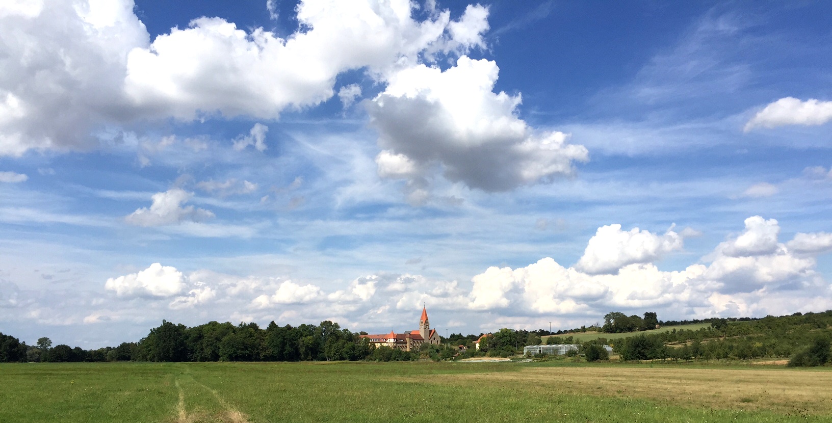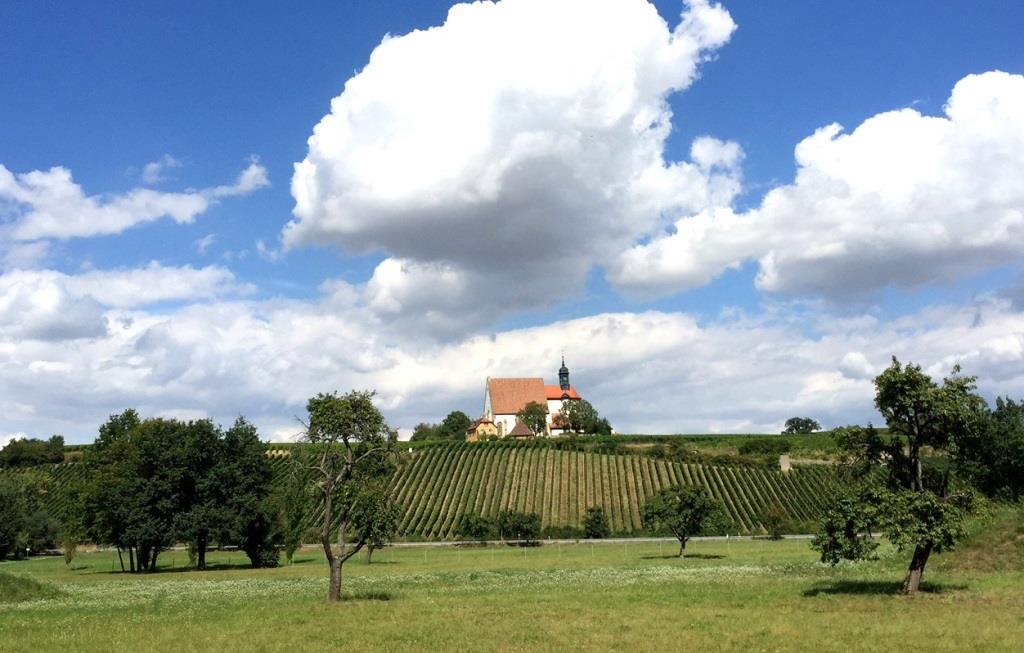 … rechts die Wallfahrtskirche „Maria im Weingarten“.