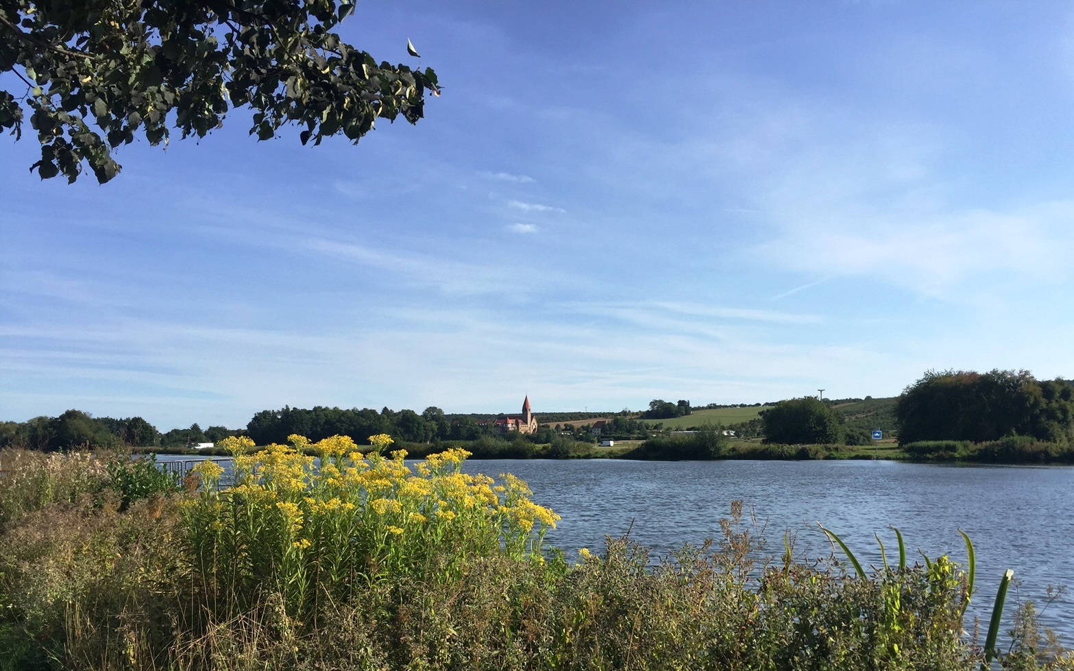 Weiter rolle ich nach Norden, in der Ferne das Kloster St. Ludwig, …