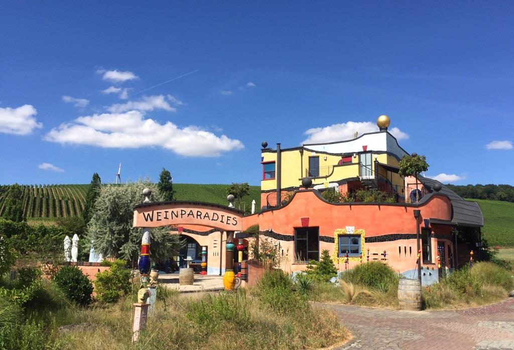 Auf dem letzten Teilstück gibt es in Untereisenheim ein Baukunstwerk zu besichtigen. Der berühmte österreichische Künstler Friedensreich Hundertwasser, geboren als Friedrich Stowasser, hat nicht nur den Hundertwasser-Bahnhof in Uelzen und eine öffentliche Toilette in Neuseeland geschaffen, sondern auch dieses „Weinparadies“ im fränkischen Weinbaugebiet gestaltet. Von der Marathonstrecke im Hintergrund war es uns in jeder Runde eine Richtschnur.