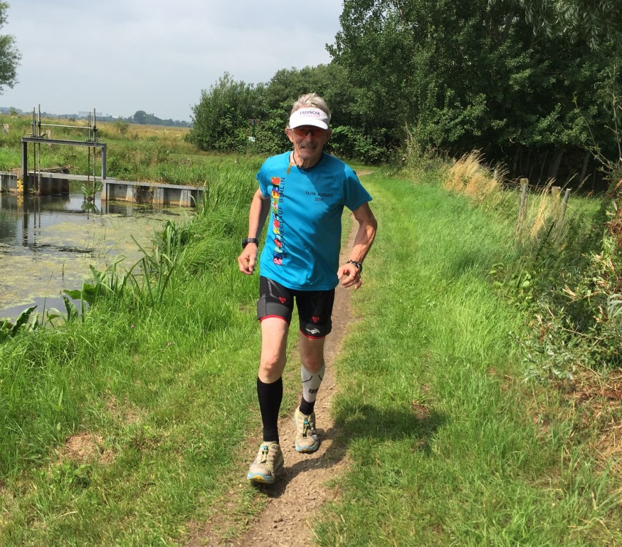 Das Werderland ist von Wassergräben durchzogen. Hier kommt mir der Ultrafriese Andres entgegen