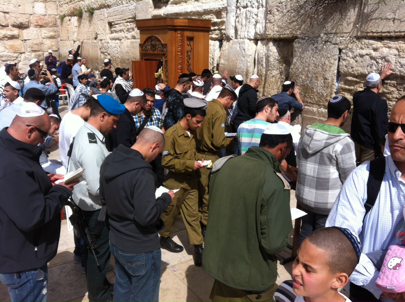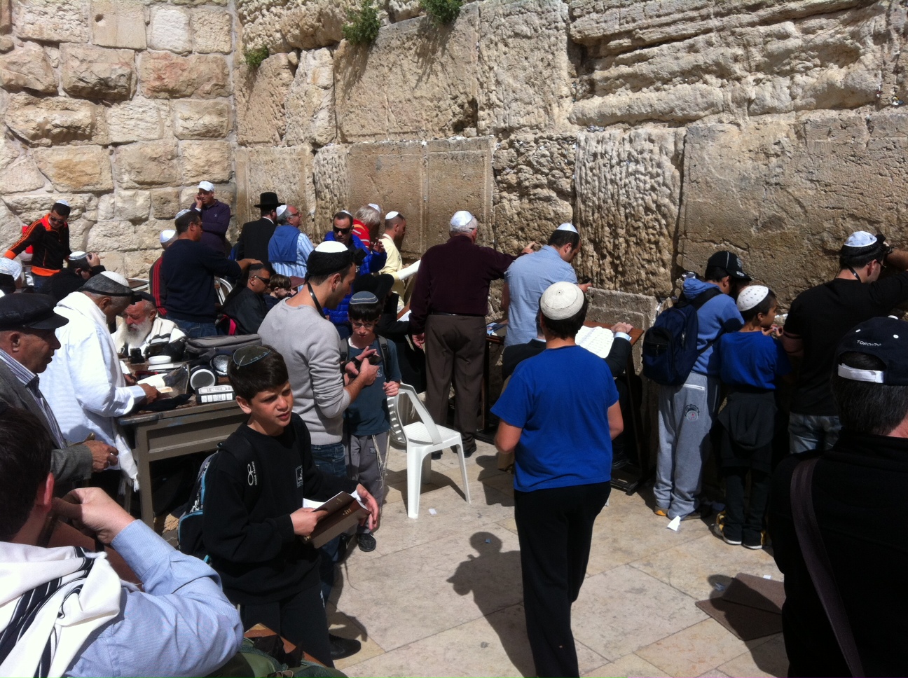 An der Klagemauer war an diesem Tage viel los, es gibt eine Eingangskontrolle ähnlich wie an Flughäfen.