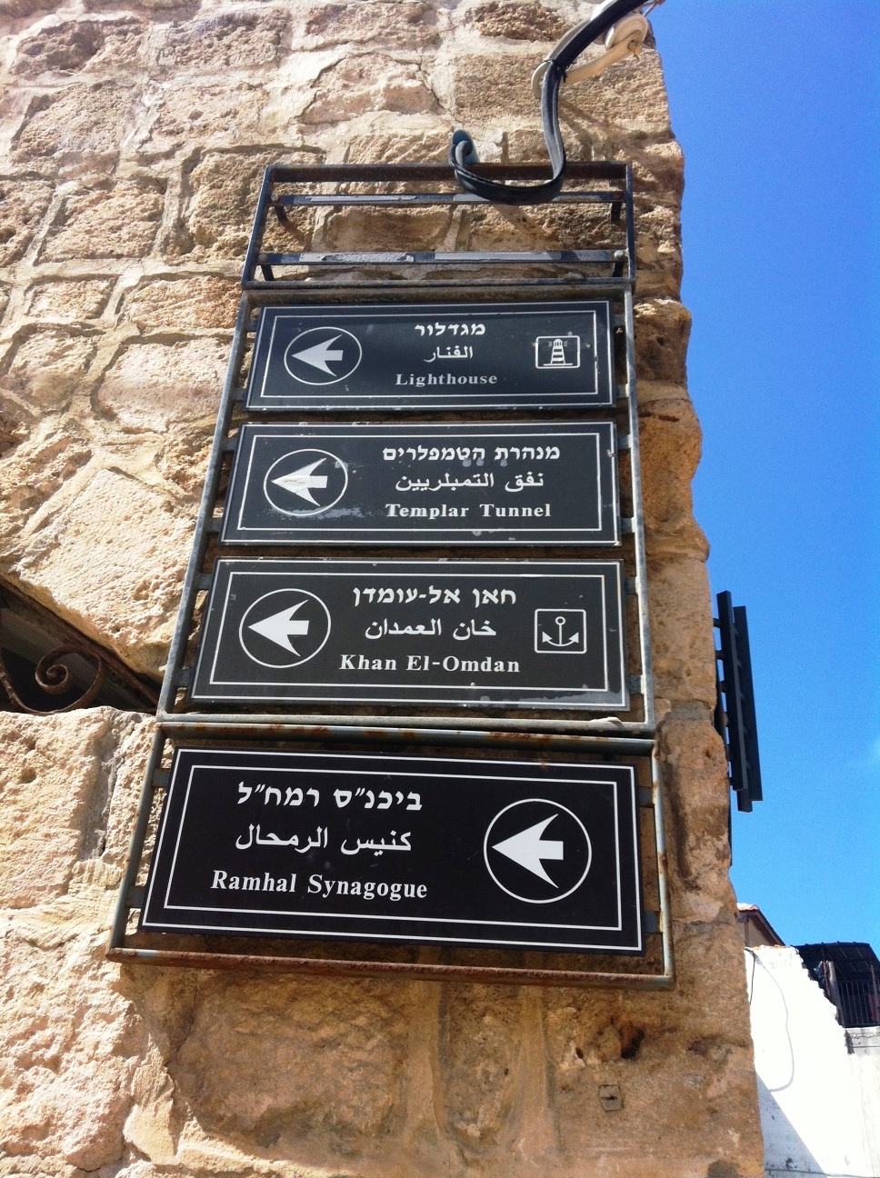 Wie überall in Israel sind Hinweischilder immer v. o. n. u. in hebräisch, arabisch und lateinisch/englisch beschriftet.
