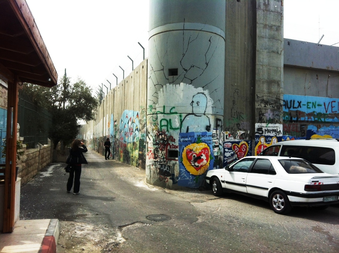Bethlehem ist eines der palästinensischen Autonomiegebiete innerhalb des israelischen Staatsgebietes und wurde von den Israelis mit einer Mauer umgeben. Israelische Staatsbürger dürfen hier nicht hinein, auch nicht unser Reiseleiter. Hier leben auch ca. 1500 palästinensische Christen, einer von ihnen war unser Stadtführer.